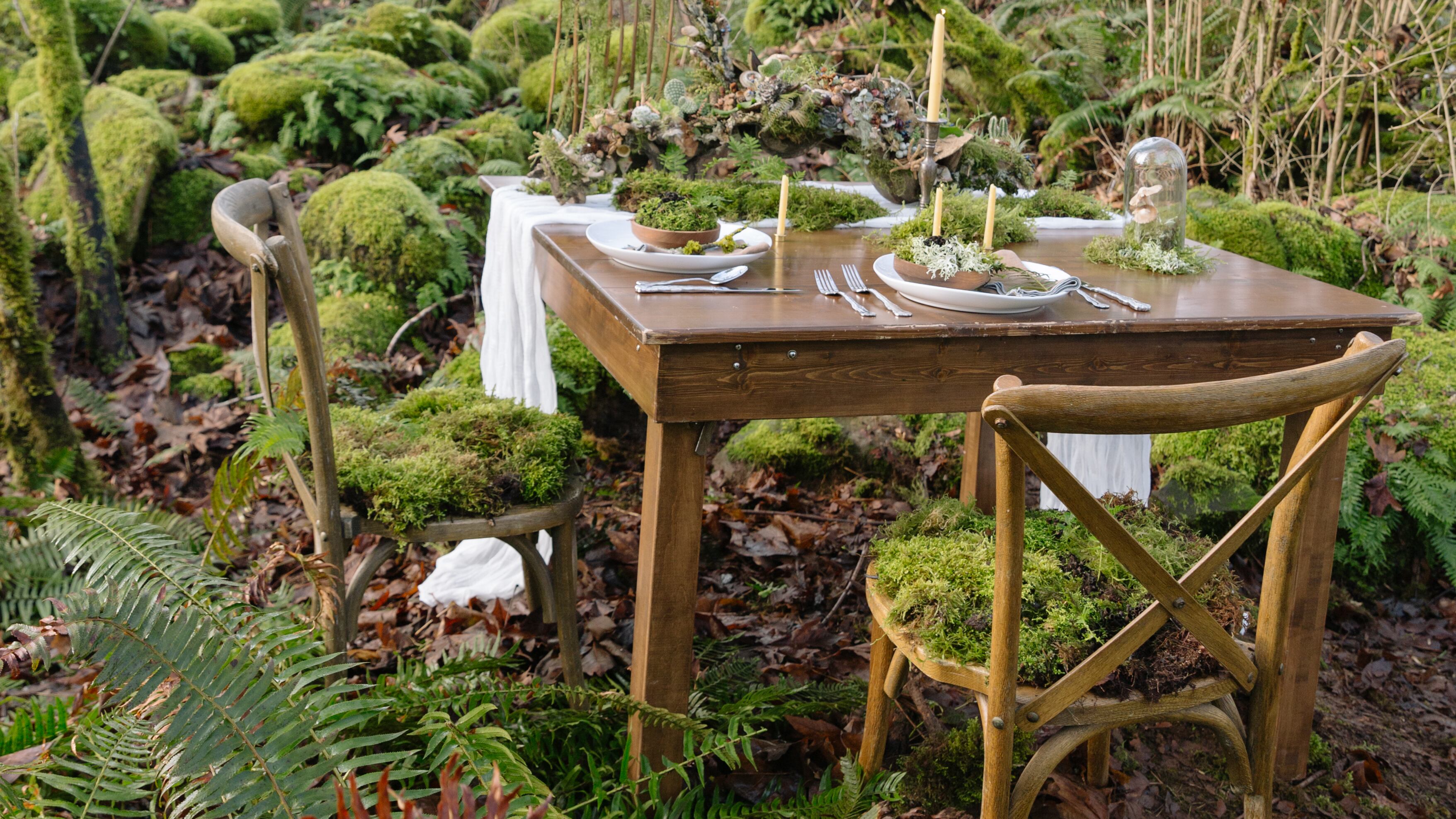 Still, she tried it. A visit to the flower market produced a single log, which she decorated with a few textures—kiwi vine succulents, seedpods of poppies—snapped photos, and snuck the images into her portfolio. The unusual arrangement caught the eye of a bride and her fiancé, Woods, which pushed Weeks to expand and make a few more. That’s all it took. “I was hooked,” Weeks says. “Woodlands gave me new eyes. I started to see things I’d never noticed before.”