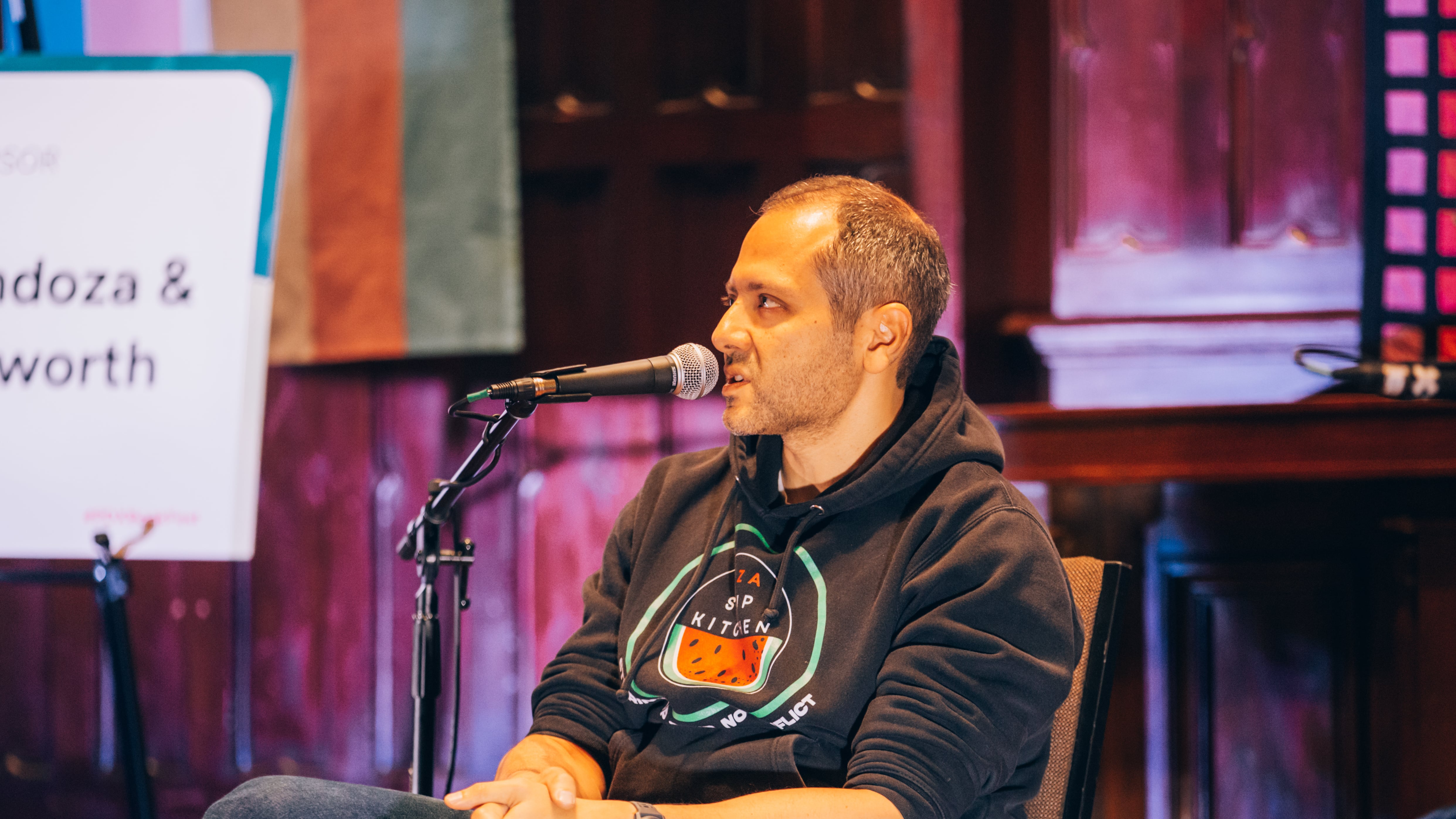 “It’s very difficult to think in celebratory terms about a book that was written in response to a genocide,” he said. “It’s difficult to think in celebratory terms when I have spent two years seeing what shrapnel does to a child’s body. It’s difficult to think in celebratory terms when I know my tax money is supporting this, and that many of my elected representatives happily support it, and it is difficult to think in celebratory terms when I have been watching people snatched off the street by agents of the state for daring to suggest that Palestinians might be human beings.”