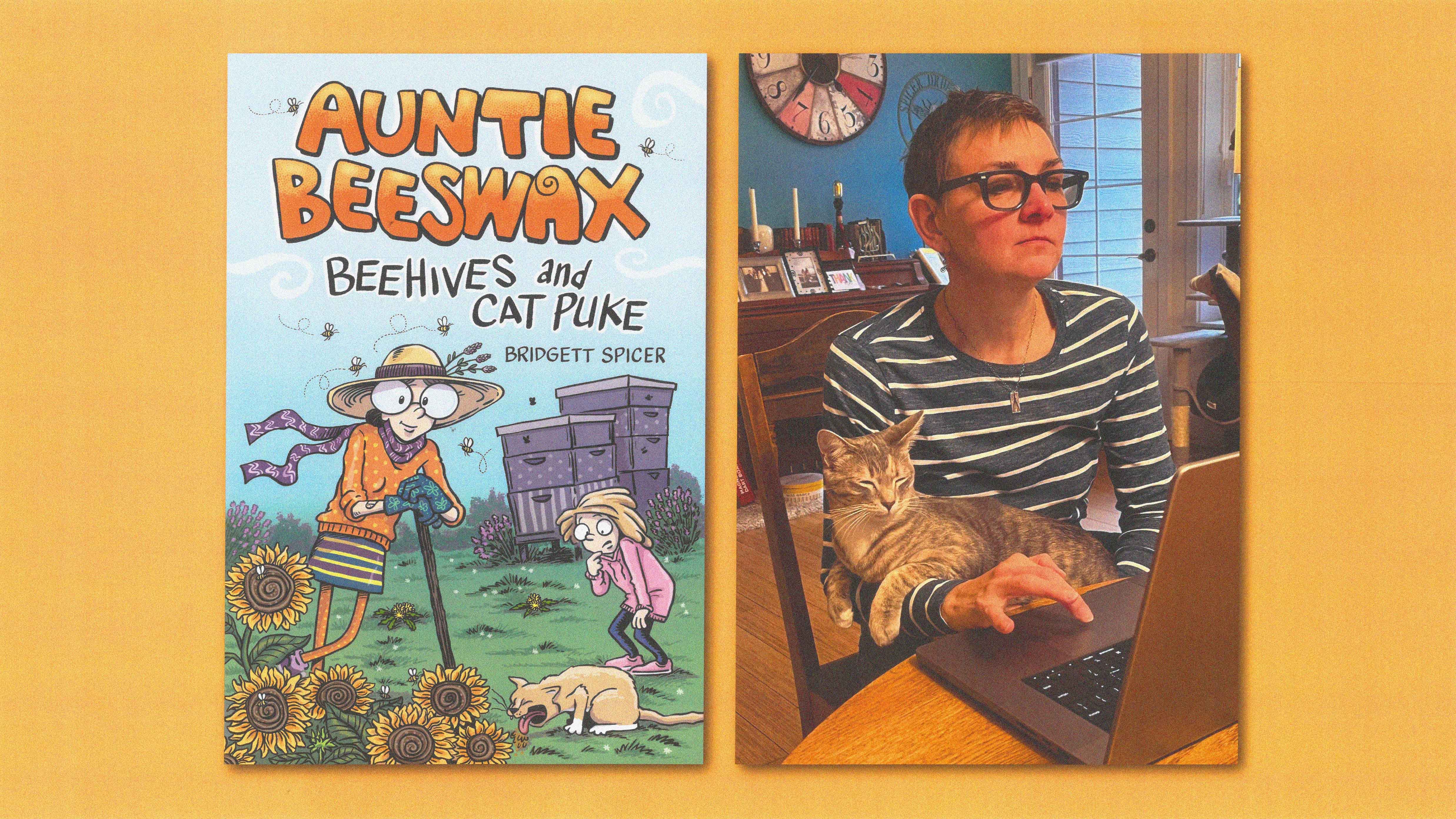 To wit: Bridgett Spicer has only two cats, Moxie and Molly, not the half-dozen or so that trail Auntie Beeswax. Spicer and Auntie Bee are both middle-aged ladies who wear glasses, but Spicer doesn’t keep bees or travel only by bike or have a stormy teenaged niece she cares for named Mallory. If all of this feels surprising and maybe a little disappointing, that’s a testament to how fully realized the fictitious Auntie Beeswax’s cartoon world is.
