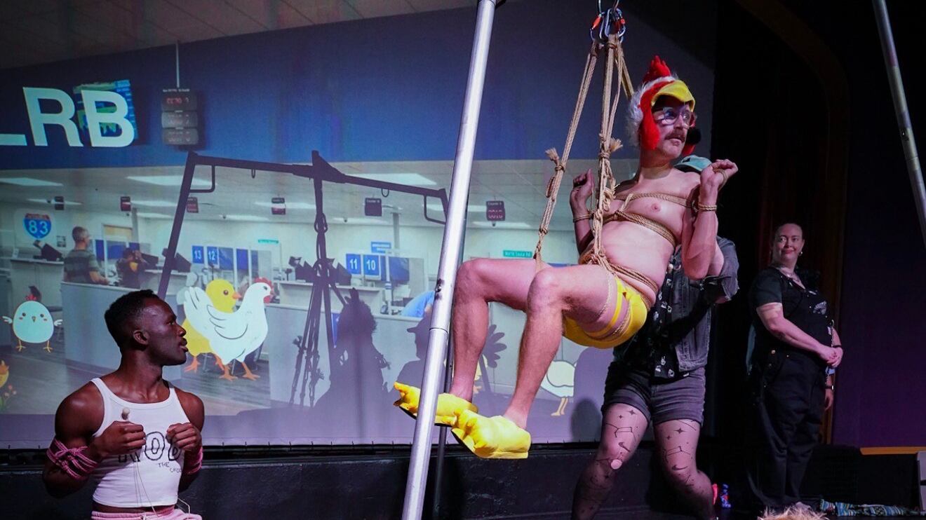 For the anniversary, however, the team indulged in not one but two kink lectures, each followed by lengthy demos, multiple comedian sets, and improv games. The games may have run a bit long, the scenes lingered indulgently, and the show itself stretched longer than usual because of that decision—though most of the audience stayed until the end. It seems redundant to say the overly stacked performances were somewhat masturbatory in length. Maybe that was part of the gimmick that went over my head.
