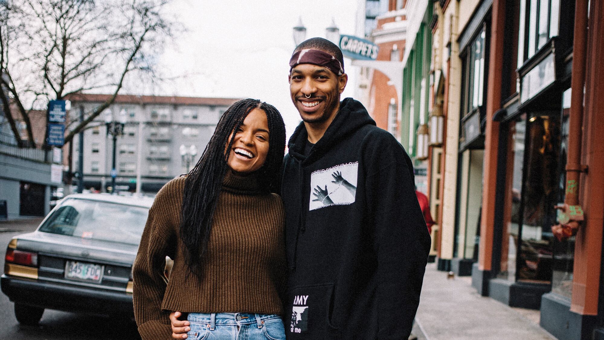(Left) "I have only had good experiences since moving here. Portland has been pretty inviting in all senses being an East Coast Canadian. We may have to be here a little longer to really develop a more nuanced opinion." (Right) "I'd say the same thing. It's been an easy transition for the most part, housing included. We are definitely the outsiders coming in, but it's been OK."