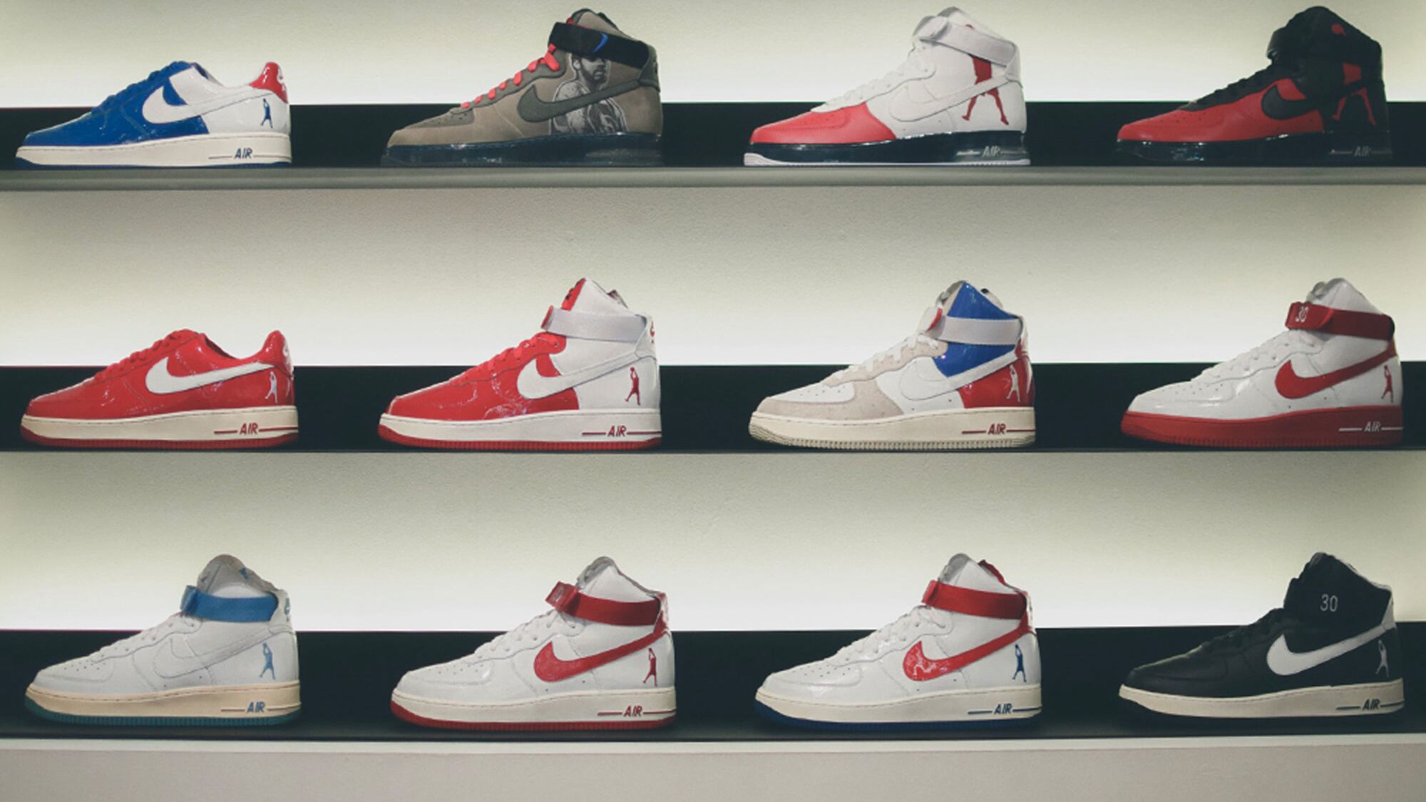Wallace's fashion legacy began with his embrace of Nike's Air Force 1 as his game shoe of choice. Though performance basketball shoe technology had long surpassed the AF1 by the early 2000s, Wallace played his entire professional career in the high-top, often in personalized Player Edition (PE) colorways made especially for him by Nike, finished with patent leather and branded with his fadeaway jumper logo. In October 2017, all 12 of Wallace's PE sneakers were brought out of Nike's archives and displayed at Unspoken at a launch event for Nike's new NBA jerseys, complete with a white-gloved archivist handling the shoes.