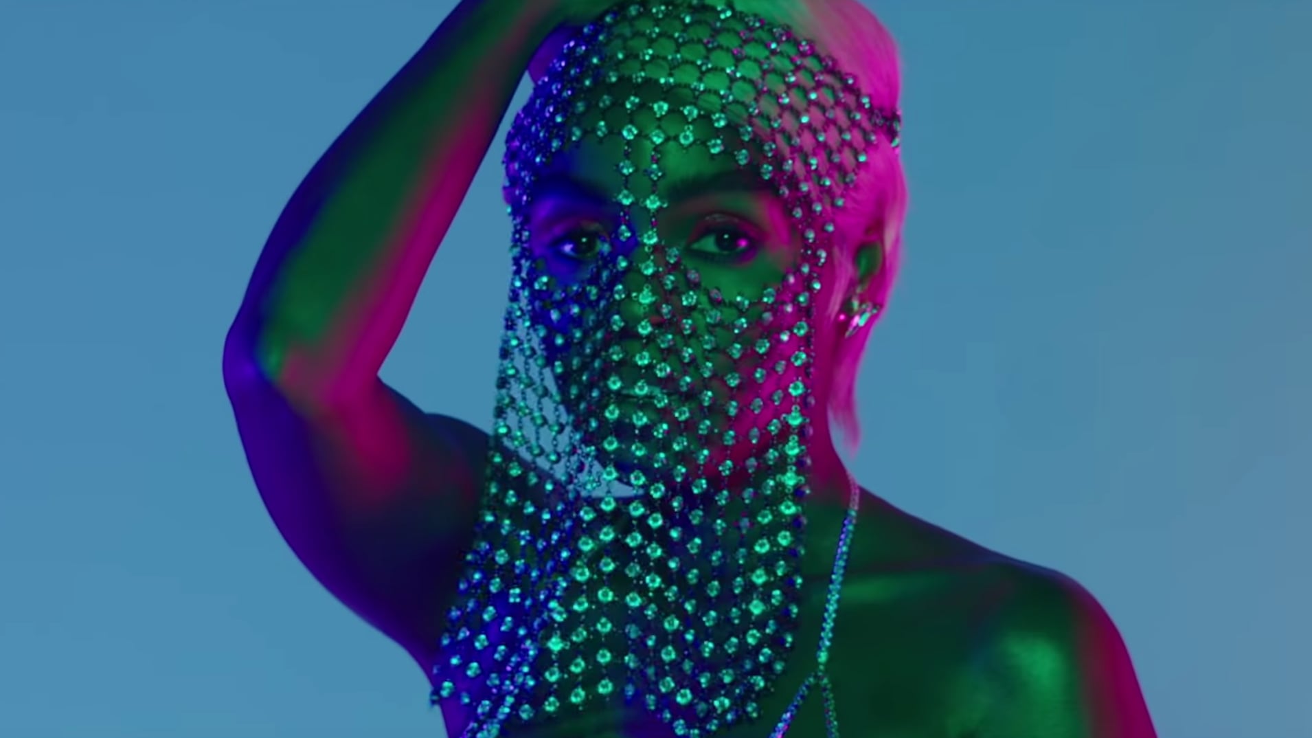 2. A raspberry beret topped just about every outfit she changed into, resembling the halo that encircles her head on Dirty Computer's album cover. The beret was an obvious nod to her late friend and mentor, Prince.