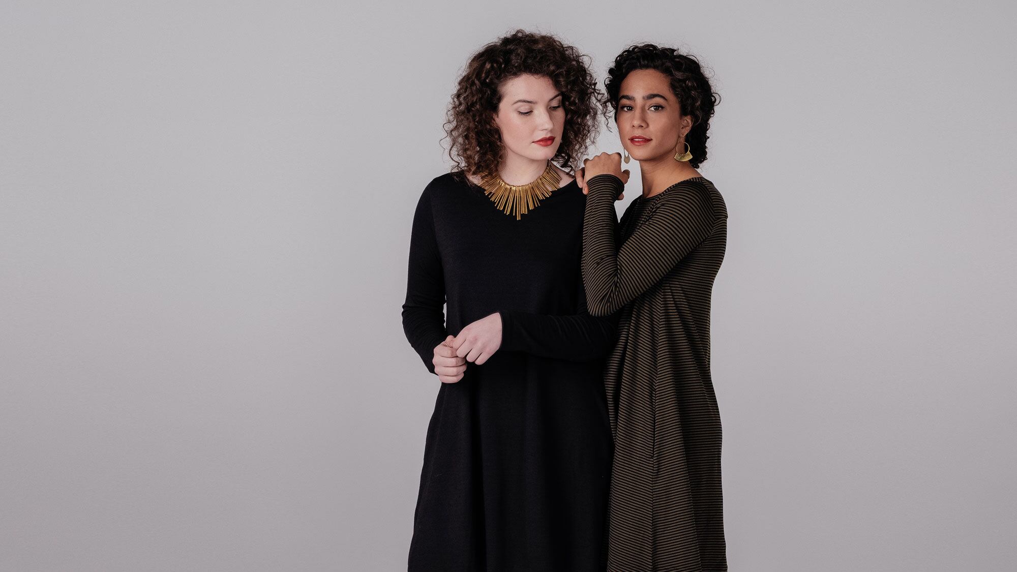 Our designer is very tuned in with what's going on in the womenswear space, and she really comes at it from, "What's the most functional, versatile design that we can make?" We really liked this swing dress, because we felt it matched the aesthetic we were looking for—you can dress it up, you can dress it down, you can wear it year-round. Really what sets us apart is the material. It's a merino-nylon blend, and there are no other companies using this specific type of yarn that we're using. Wool can sometimes be a little delicate and finicky as a knit, so the nylon just really reinforces it and gives it that durability we're looking for.
