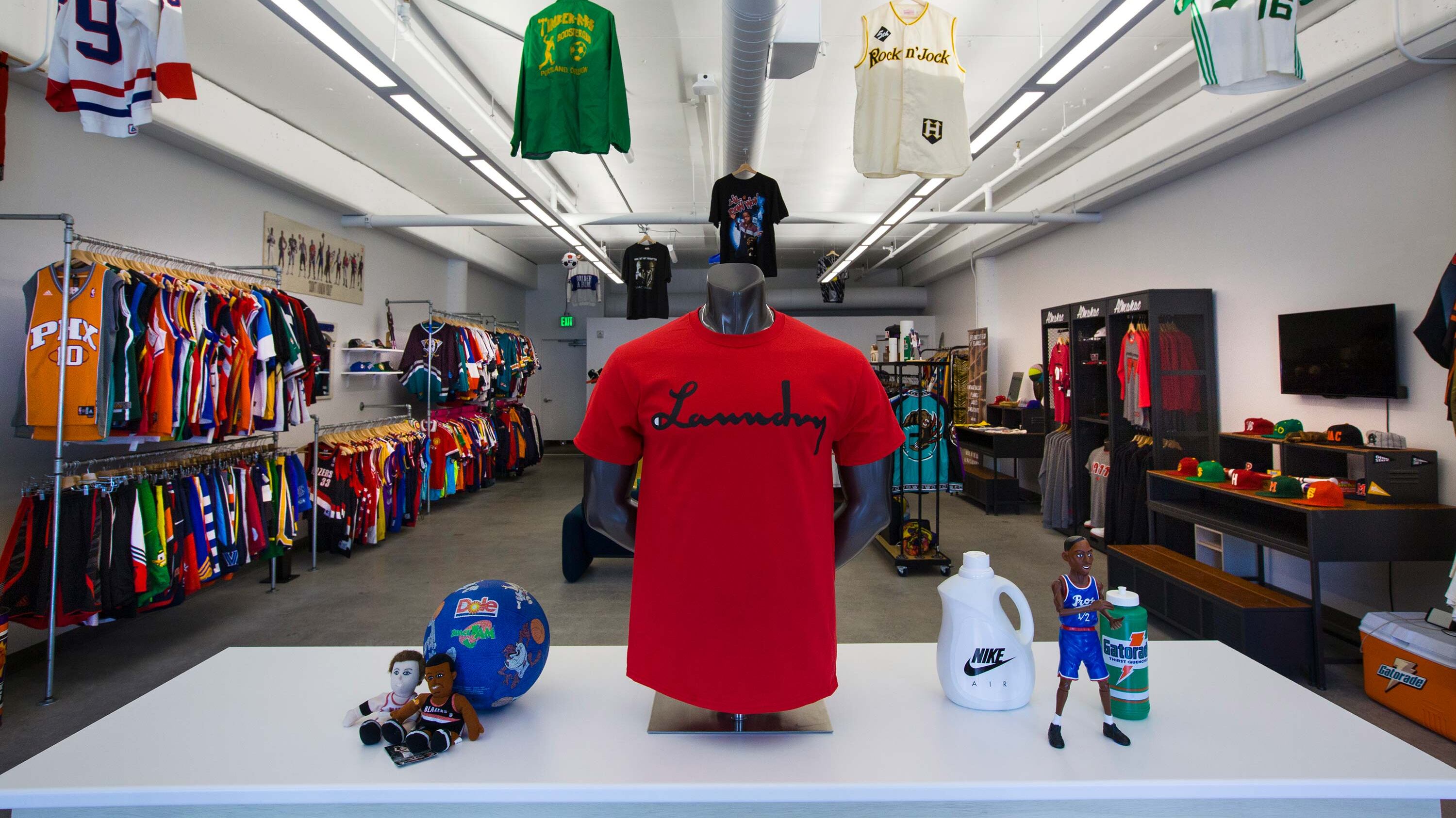 Just as in its old spot, Laundry buys vintage clothing from walk-in sellers all day, every day—there's just way more room for them now. Everywhere you look, there are throwback sports jerseys and apparel, NBA game shorts and various pieces of 20th-century pop culture sports ephemera. There are also cleverly executed in-house design pieces and collaborations, plus a select range of vintage-inspired clothes from cult retro brands like Ebbets Field Flannels and Almanac. (On my visit, I gravitated toward a particularly crispy pair of Mitchell & Ness reissue shorts from the long-gone, late-'90s Vancouver Grizzlies.)