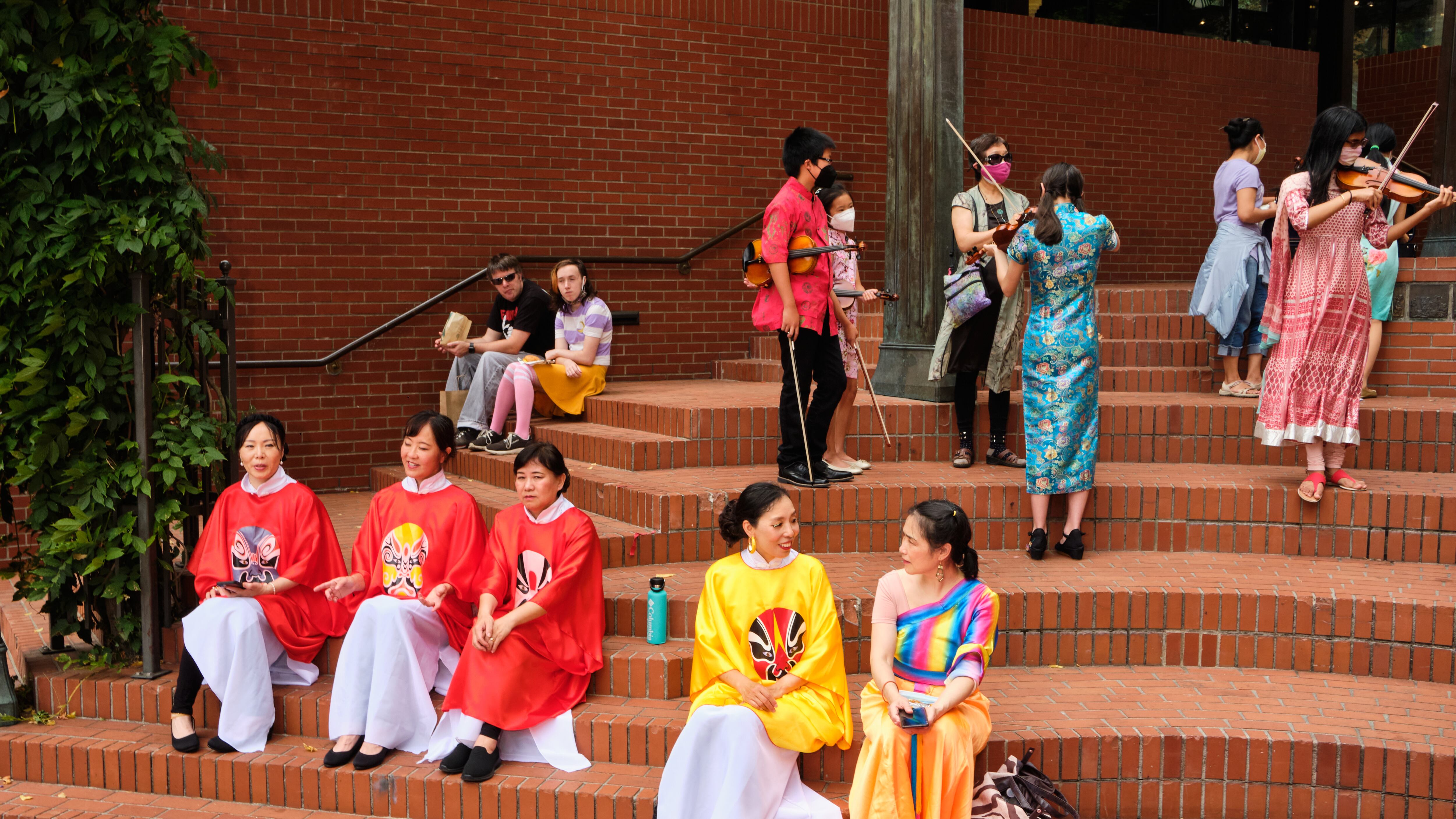 More than 500 performers are scheduled on OCF’s stage, the earliest beginning at 11 am with an introduction by emcees Meilan Xu and Lucas Zhang. The program’s four sections cover traditional and modern Chinese performance art, with group appearances by troupes such as White Lotus Dragon & Lion Dance, 温哥华苿莉花舞队 Vancouver Jasmine Dance Troupe, Salem Golden Willow Chinese Dance Team, Pacific Violin Academy, children’s group Winnie Chinese Dance, and Dragonfly Chinese Yoyo Team, to name only a few. Soloists include violinist Erin Qiu, folk singer Tingting Hou and street dancer Wynn Young.