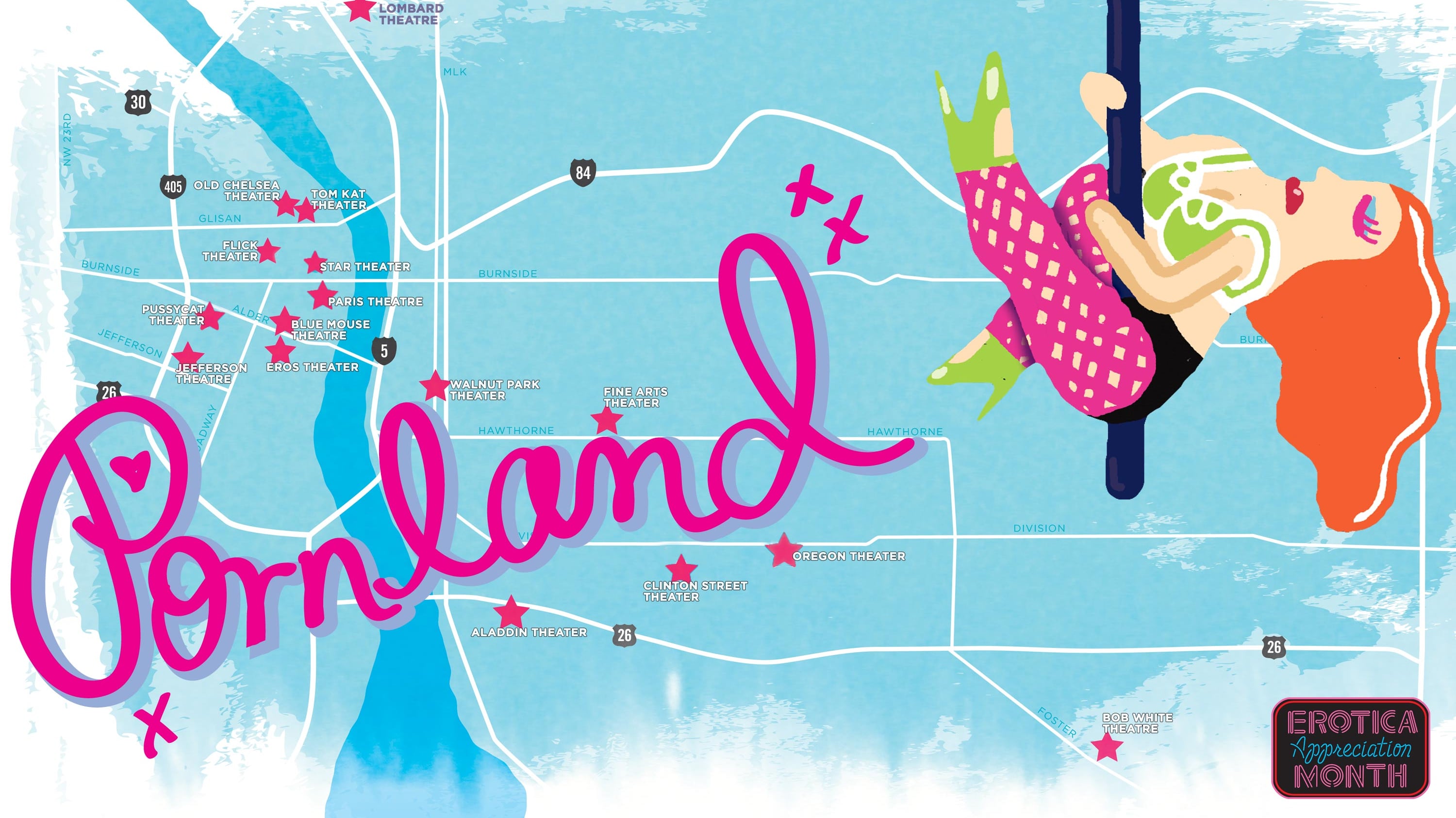 In 2012, then-Portland State University graduate student Elizabeth Morehead completed a dissertation called "Public Policy and Sexual Geography in Portland, Oregon, 1970-2010." Morehead, now working in PSU's College of Urban and Public Affairs, spoke to WW about the glory days of dirty Old Portland and its downfall in the 1980s. We reconstructed a map of most of those theaters at porn cinema's citywide peak in 1974. If you were raised in Portland, ask your parents about their favorites!