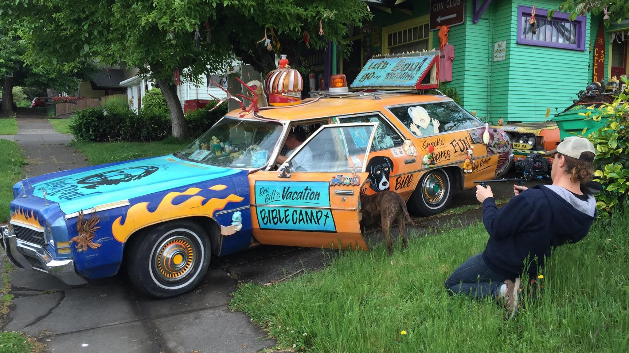 Sellwood resident Chuck Linville is an ordained minister who decorates his cars with paint, toys, and dangerous objects. Why? Because he can.