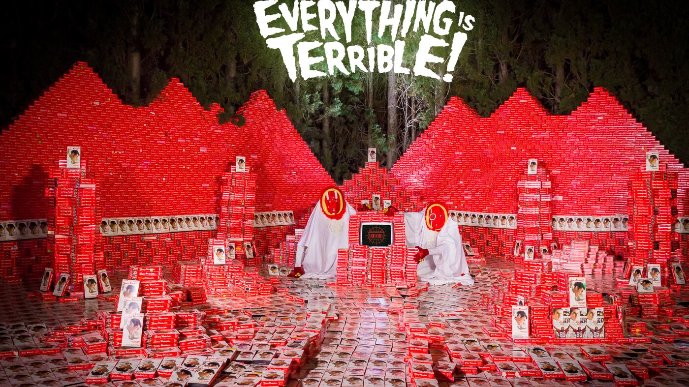 And anyway, there's still quite a bit of work to be done. When asked how many Jerry Maguire tapes the group wants for their pyramid (they've currently amassed around 16,000), Meier responds in typically absurdist and obsessive Everything Is Terrible! fashion. "All of them," he says. "Every single one out there." DONOVAN FARLEY.