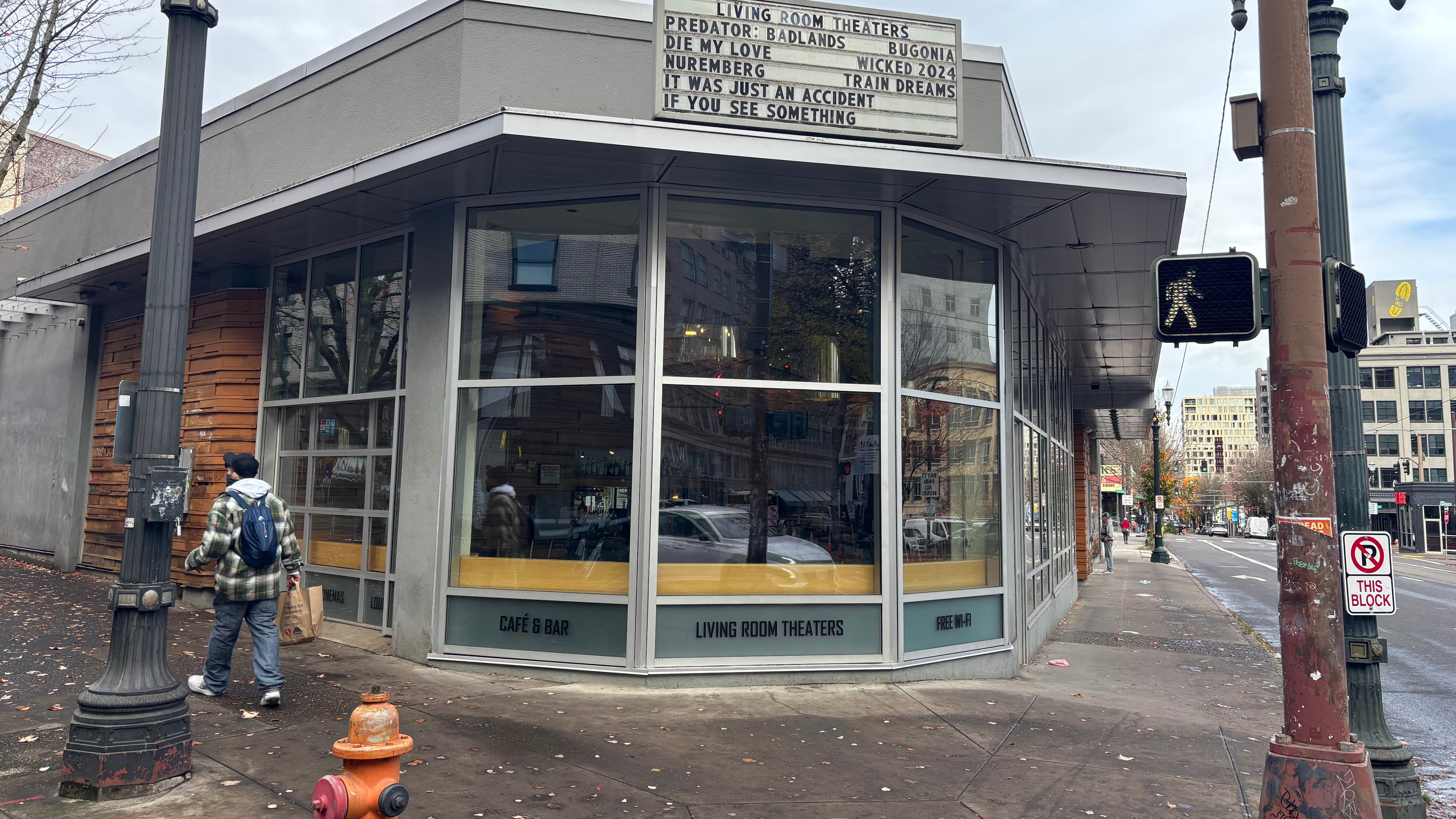Living Room Theaters is notable among movie theater chains for its independent and arthouse programming, often shown alongside popular new releases. The Portland location—sitting across the street from the landmark Powell’s City of Books—recently hosted a viral screening of Yorgos Lanthimos’ new film Bugonia, where barber Zack Herring shaved guests’ heads for free entry.