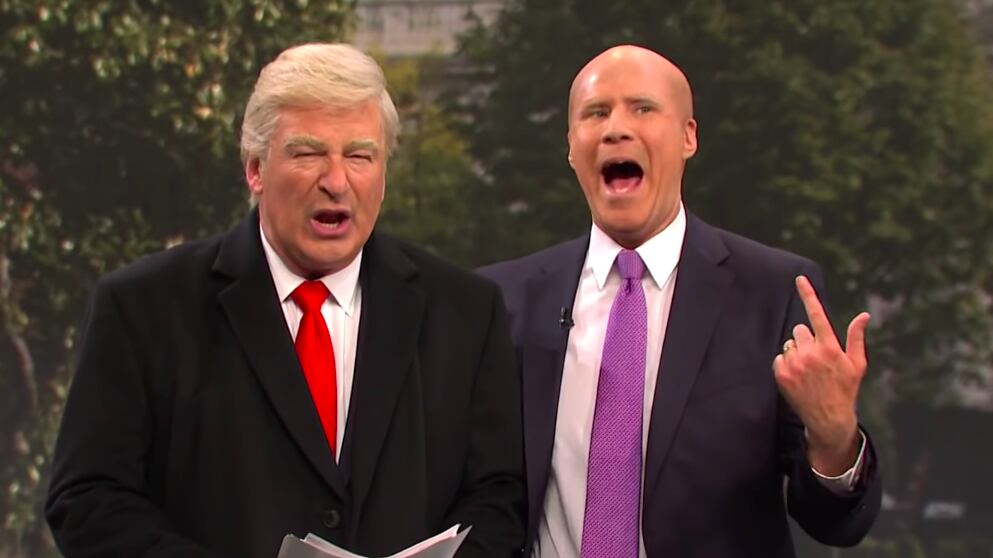 In the sketch, Alec Baldwin returns to do his terrible Donald Trump impression, yelling at a group of reporters and reading off notes written in giant letters as a helicopter whirs in the background. (It's one of those classic SNL bits that doesn't really satirize current events but rather just sort of recaps them using famous people.) Ferrell, who also hosted, shows up as Sondland toward the end, wearing a bald cap and the shit-eating grin the real Sondland sported in front of Congress this past week, as both take turns attempting to throw the other under the proverbial bus.