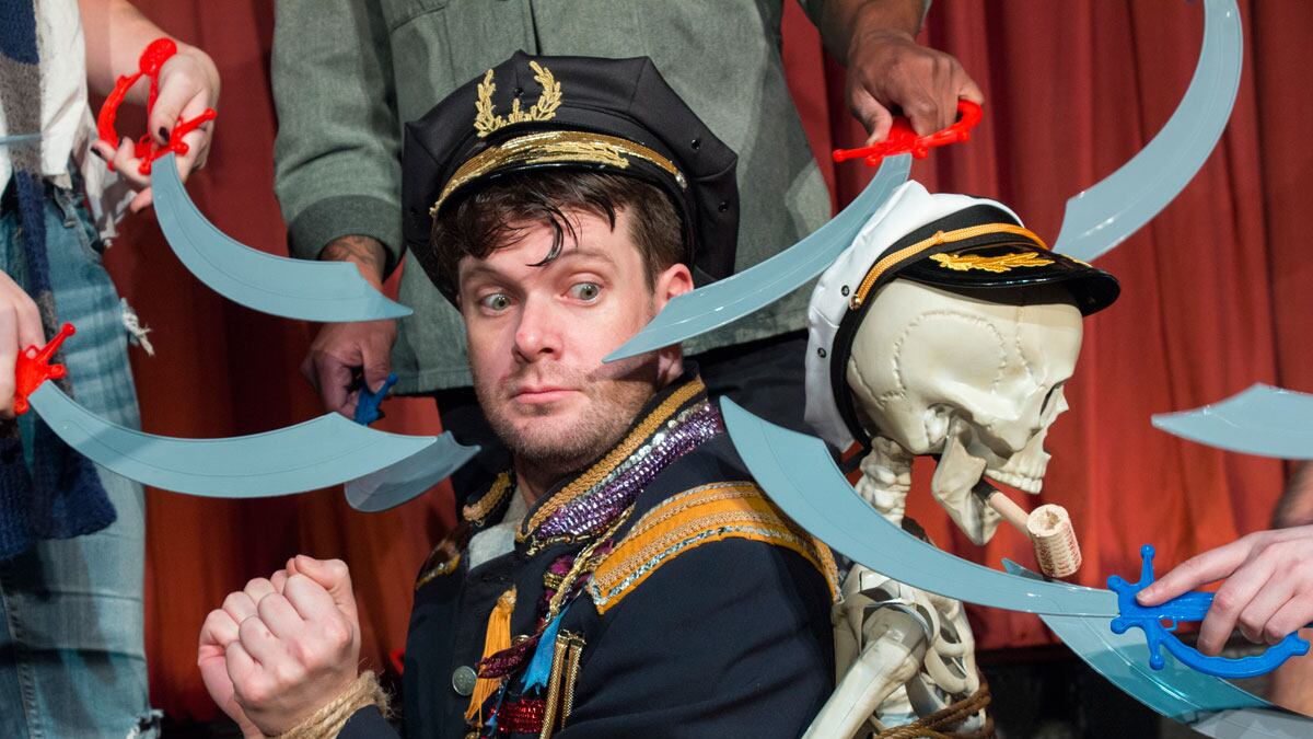In the fascism-skewering satire, a crew from a petroleum barge ends up stranded on an island. There, they struggle to uphold Democratic ideals while guzzling gas fumes from paper bags. The contemporary parallels of the story are obvious—especially in a subplot about the ostracization of Jacob (Myles Lawrence)—but The High Captain is also a blissfully goofy escape to a bizarro land of skeleton worshippers, party-hat wearing pirates and purely absurd, over-the-top political battles.