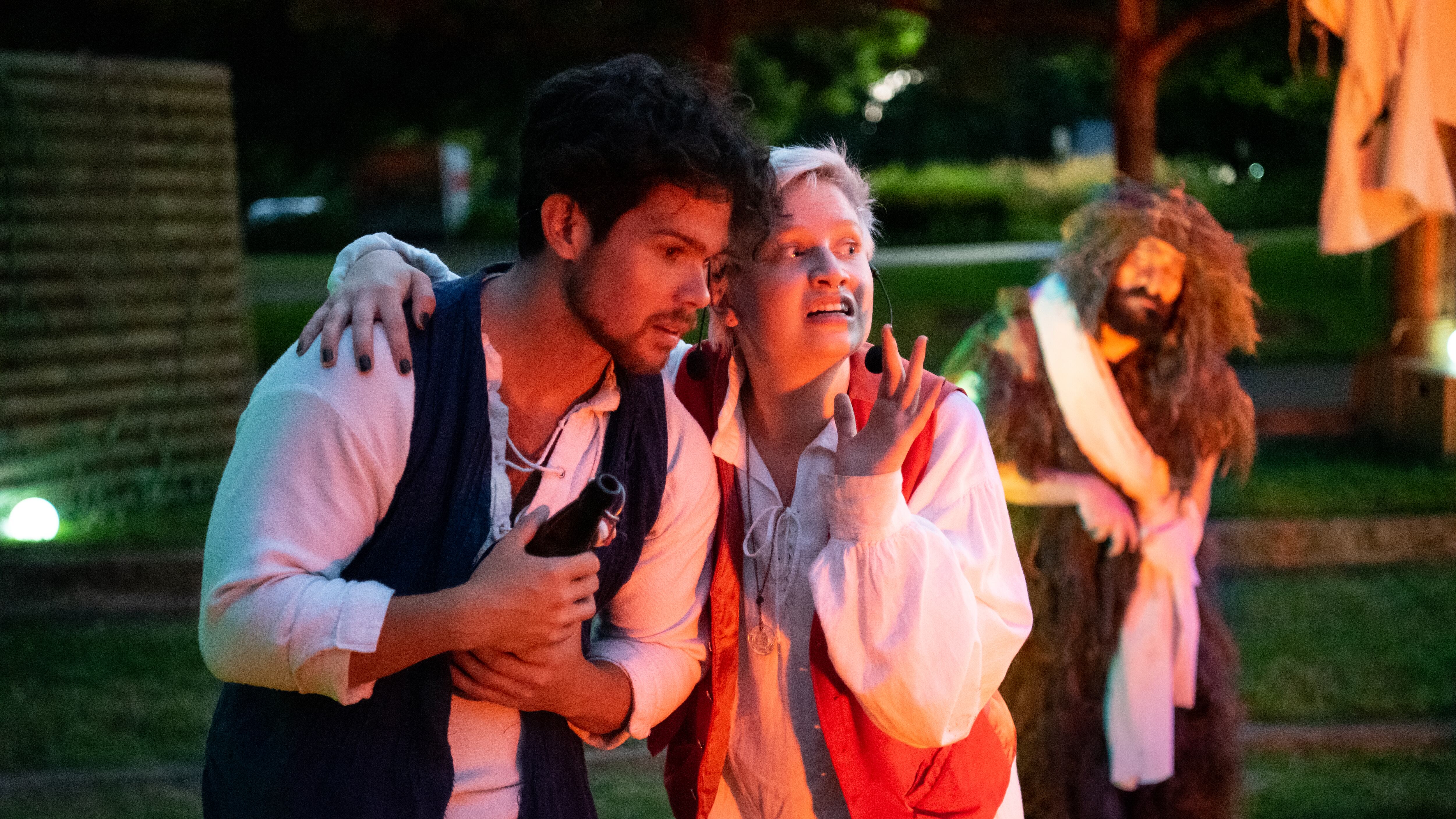 Those willing to make the commute to Hillsboro should leave early. I wandered around Rood Bridge Park for some time before finding the performance, but the park provided a beautiful backdrop to the stage, and the neighborhood noises blended nicely into the play’s soundscape. By the time the show ended, the sun had fully set. The revels had indeed ended.