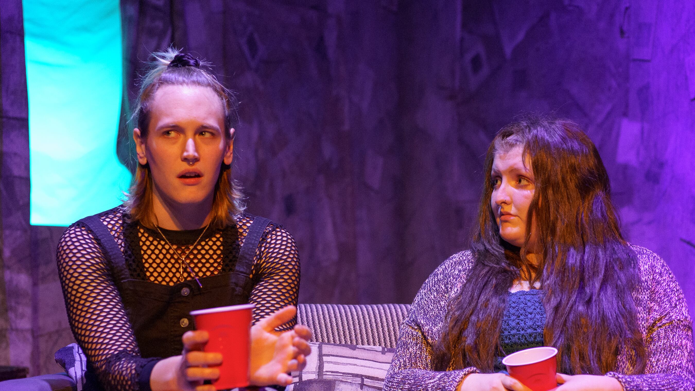 Desiree (Ethan Feider) and Belinda (Jody Read) meet in a women’s studies course during freshman year of college and connect at a shitty house party. Like many gaybies, Desiree and Belinda immediately trauma bond (rape, incest and transphobia are some of the show’s heaviest themes) and fall hard for one another. Something about Feider and Read’s onstage chemistry is so embarrassingly earnest that audiences won’t be able to stop themselves from rooting for these crazy kids.