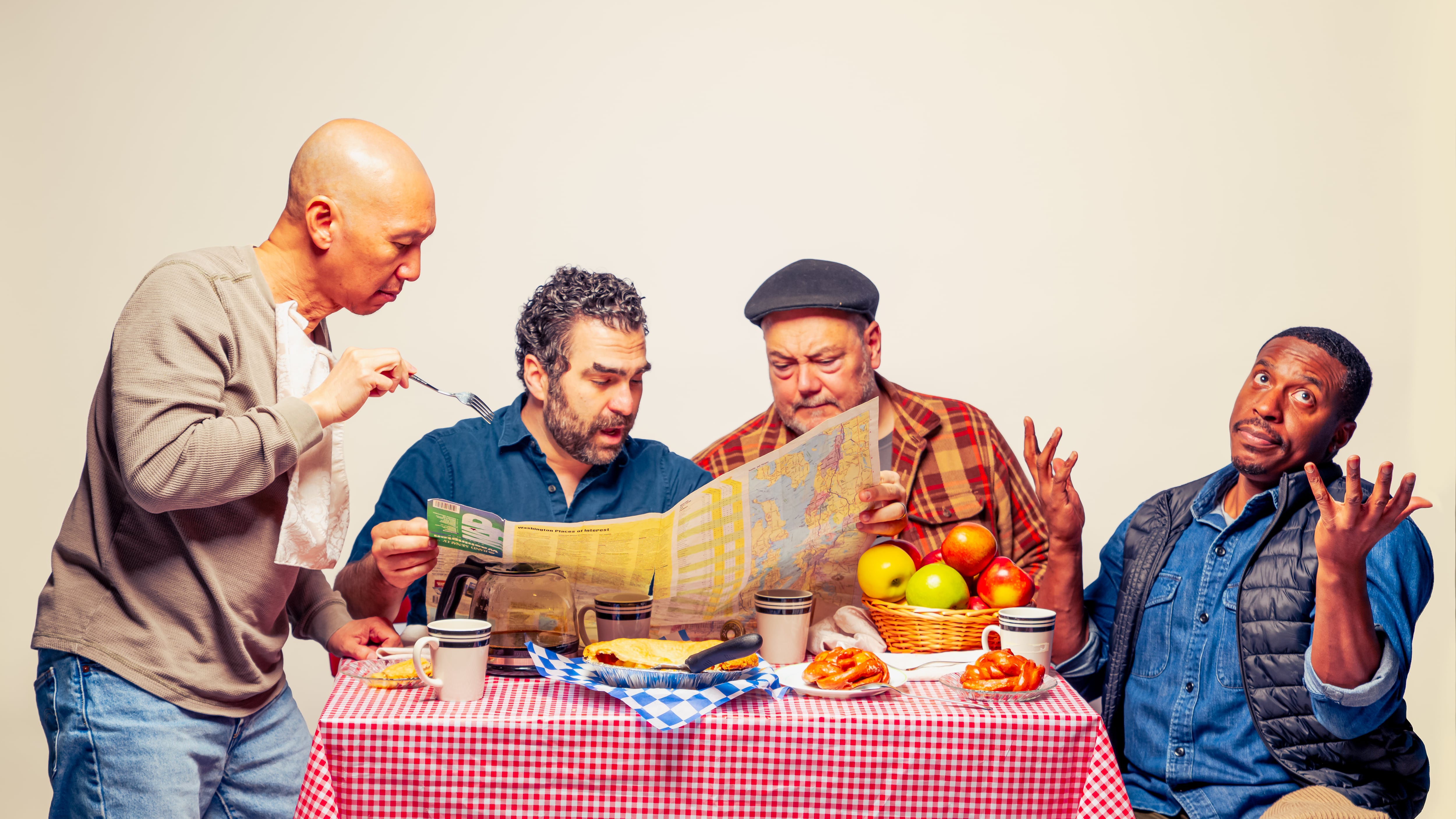 Apple Hunters! is about two adult brothers, Paul and Eddie, and their two childhood friends, Don and Stan. After experiencing several heartbreaks and major life events over the course of the previous year, the four decide to go on an “apple quest” to find an elusive “lost” apple variety in Washington state.