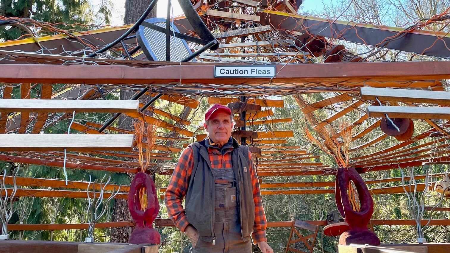 The art is irreverent, unexpected and the product of one man: Saltzman Road resident Ken Zell. Zell, 75, is the founder of Faustrollean Fixture Company, an architectural woodworking business. When he retired eight years ago, he began this passion project he calls the “Flea Zorkus.”