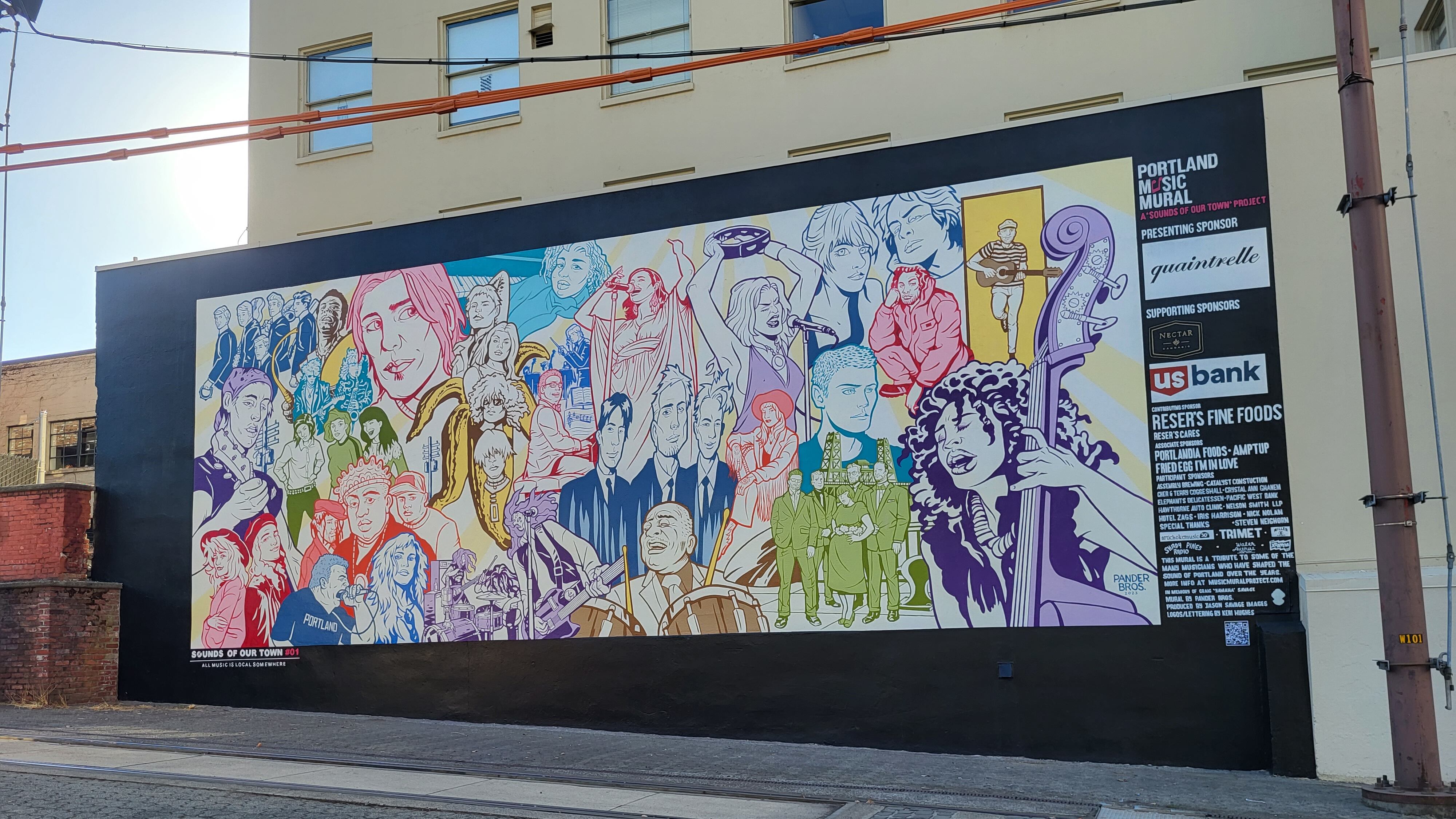 About five years ago, Savage, a photographer, noticed that Los Angeles had a mural of the late songwriter Elliott Smith but Portland didn’t have any comprehensive public art tributes to our most famous musicians such as Smith or the Kingsmen (“Louie Louie”). Savage conceptualized the mural and fundraised for it; the Pander Brothers painted it with the help of Keri Hughes.