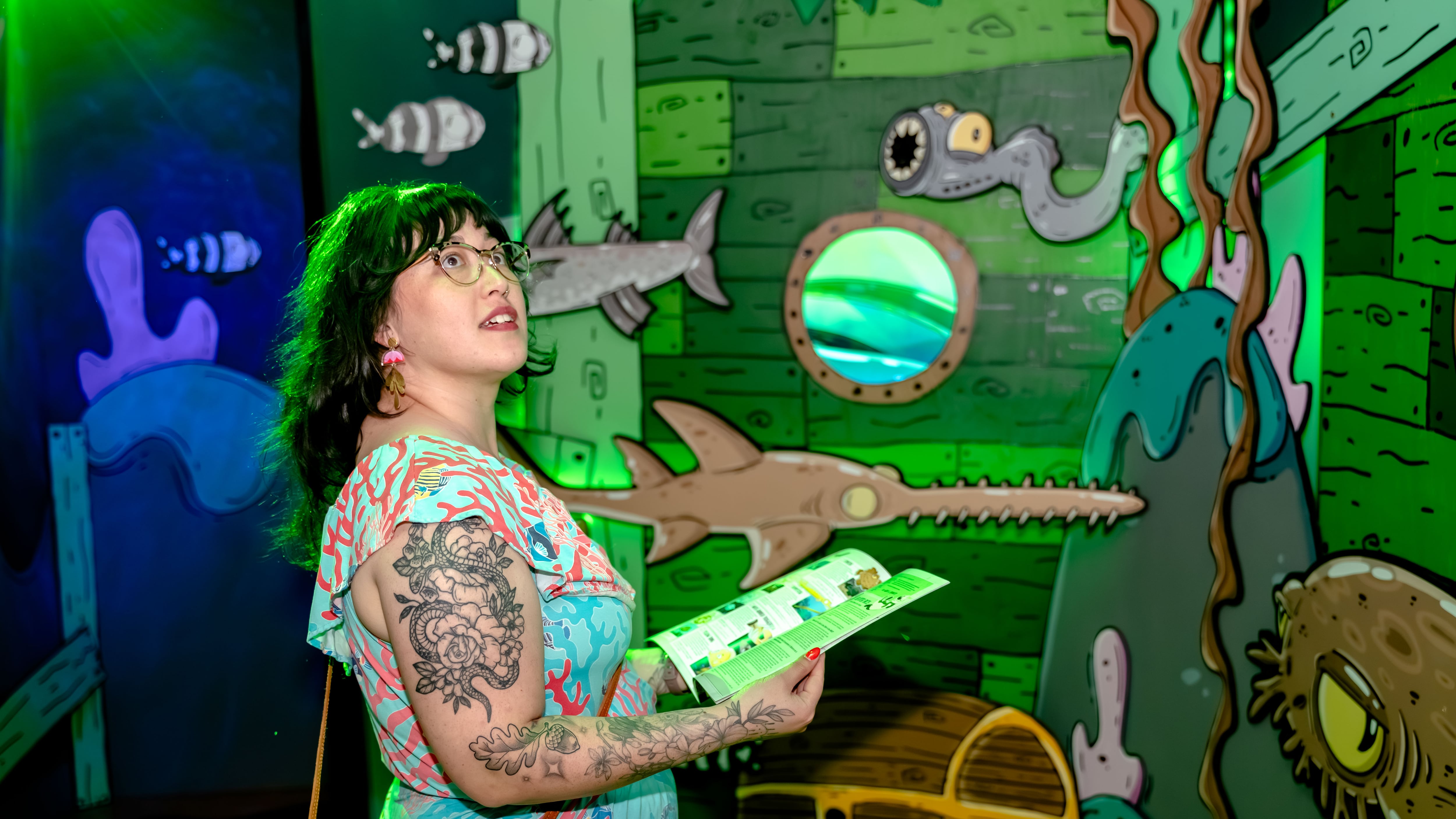 All of the hallmarks of a Mike Bennett art immersion are present at his newest venture, the Portland Aquarium at 603 SW Broadway, which opens this Friday, June 6. Googly-eyed cartoon animals? Check. Zany introduction video where Bennett plays a scientist? Check. Scavenger hunt? Check.