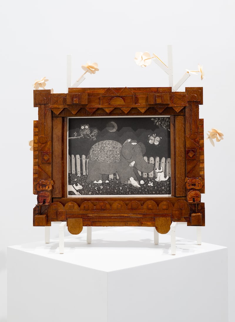 With porcelain bears, elephants, and owls dance in place as ornaments on a wooden tree sculpture—Jeffry Mitchell’s Winter Blooming leans hard into the decorative. There’s an emphasis on gathering, embellishment, and coziness throughout this new body of work that includes ceramics, sculptures, prints and drawings. Mitchell’s signature elephants show up everywhere: a wooden side table and stool, a patina-bronzed mama and calf, aquatint portraits, even gouache on manila envelopes. Familiar animal friends, including alligators, double as handles on butter dishes Even the glazes feel seasonal: dark evergreen, matte white. ASHLEY GIFFORD. 1881 NW Vaughn St., 503-222-0063, pdxcontemporaryart.com. 10 am–6 pm Tuesday–Saturday. Free.