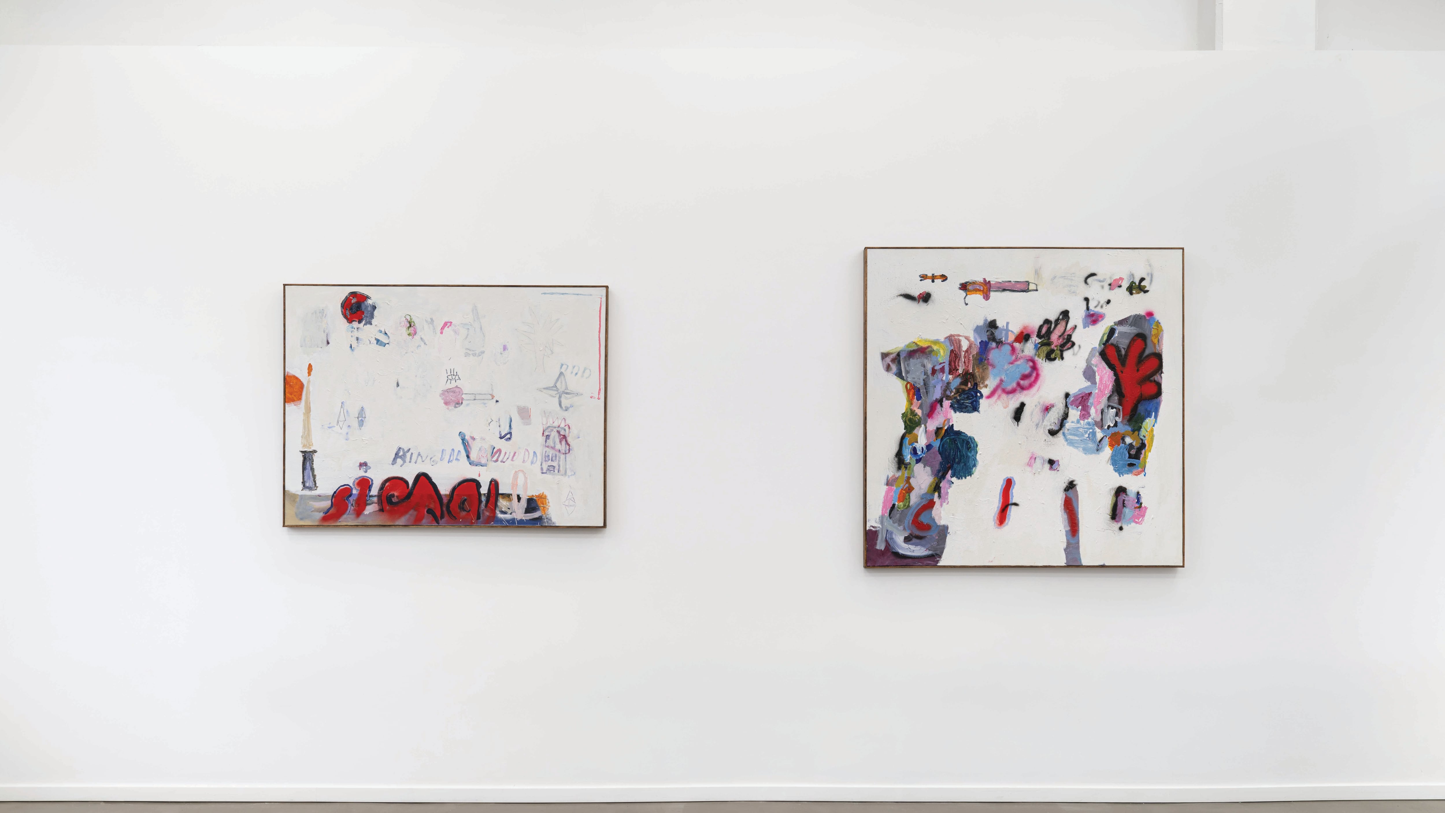 Charlie Salas-Humara returns to Nationale (15 SE 22nd Ave., nationale.us) with Billboards, a collection of spunky, multicolored, and imaginatively abstract paintings on view through mid‑February. This new body of work brims with vibrant gestures and elusive, half‑legible text. In his artist statement, Salas‑Humara cites the worn surfaces of city life as a key influence—advertisements peeling from buildings, posters layered on telephone poles, and graffiti‑style marks scrawled across otherwise pristine walls. These references surface boldly throughout the exhibition: A tuliplike bloom draws focus among dribbles of paint in Coloquial. In Compliments Of, a canine figure with sharp teeth, a skull, and scattered cross shapes appear in unison while the words “cat” and “bat” are obstructed by dripping cerulean paint. Text appears across several works, often distorted beyond recognition, meant less to be read than to be felt. Throughout the exhibition, bursts of vivid color leap forward against expanses of calm, harmonious white, offering a striking and intentional contrast.
