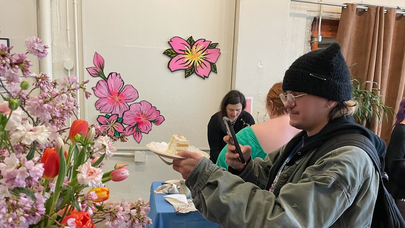 In preparation for the event, the youth participating in p:ear’s Art Works program did collaborative art pieces, painting cherry blossoms on wood or exhibiting photos taken throughout Old Town of cherry blossoms that were sold from the walls of the gallery space. Through p:ear’s Works programs, youth baristas in Coffee Works created an exclusive drink menu of seasonal drinks, the Flower Works program made flower wraps and sold bouquets, and also created the pop-up’s central floral installation using cherry blossom branches tall enough to tower over the entire proceedings, much like the trees on the waterfront form a pastel canopy to herald the return of spring. In this way, the event paid tribute not only to Sakamoto and the changing of the seasons, but also the strength and resilience of a community that supports each other despite the odds.