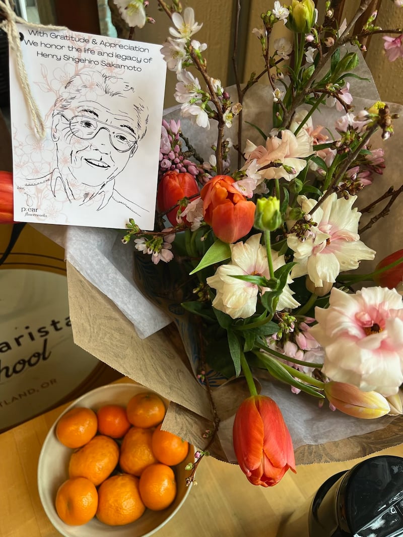 The March 12 event at p:ear gallery was a one-off, pop-up floral installation titled New Bloom. The event, featuring floral designs highlighting the delicate beauty of our beloved cherry blossoms, was a tribute to the life and work of Henry Sakamoto, the icon of Portland’s Japanese American community who helped establish the Akebono cherry grove through Tom McCall Waterfront Park that blooms brilliantly every spring. Sakamoto was born to Japanese immigrant parents in Portland in 1927. At 15, he was taken to an internment camp. After his release two years later, he went on to earn a business degree from the University of Oregon, becoming a business leader not just in Portland’s Japanese American community, but for the city’s culture overall.