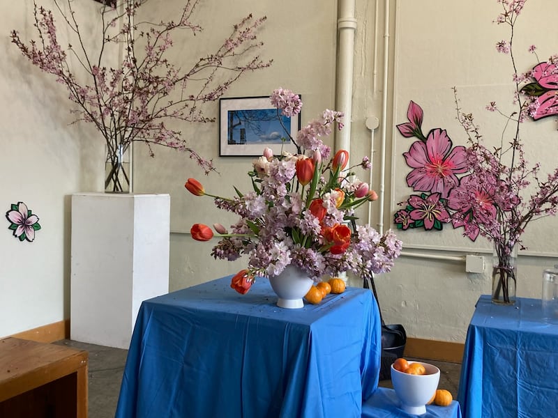 “We essentially wanted to figure out a way to embody what it feels like to re-create a grove of cherry trees,” explains Marianne Copene, director of the Flower Works program at p:ear. “The vision for the event was to honor Henry Sakamoto and his legacy, welcome in the return of spring, and celebrate setting intentions for the new year.”
