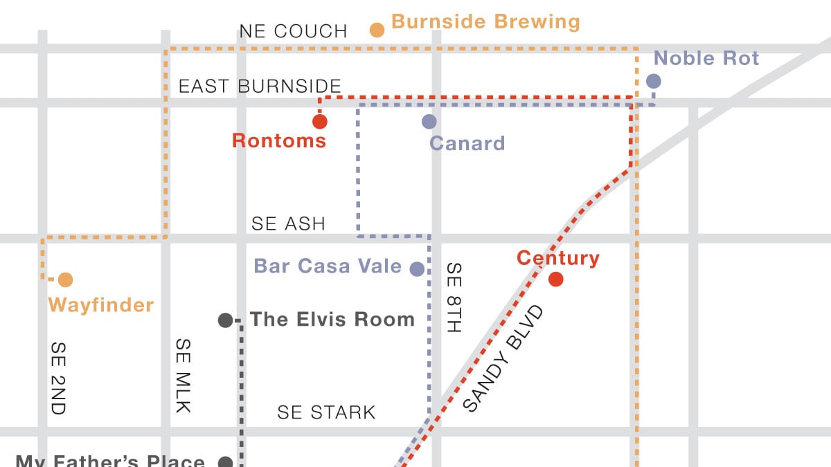 Below, you'll find such a map, as well as four distinct agendas to help you navigate it effectively based on the preferences of your crew. Mix routes at your discretion—though it's technically legal to hop from Rontoms to Le Pigeon, the best French restaurant in town may not know what to do with six dudes named Chad who got hyped AF when they saw the beef cheek bourguignon on Instagram.