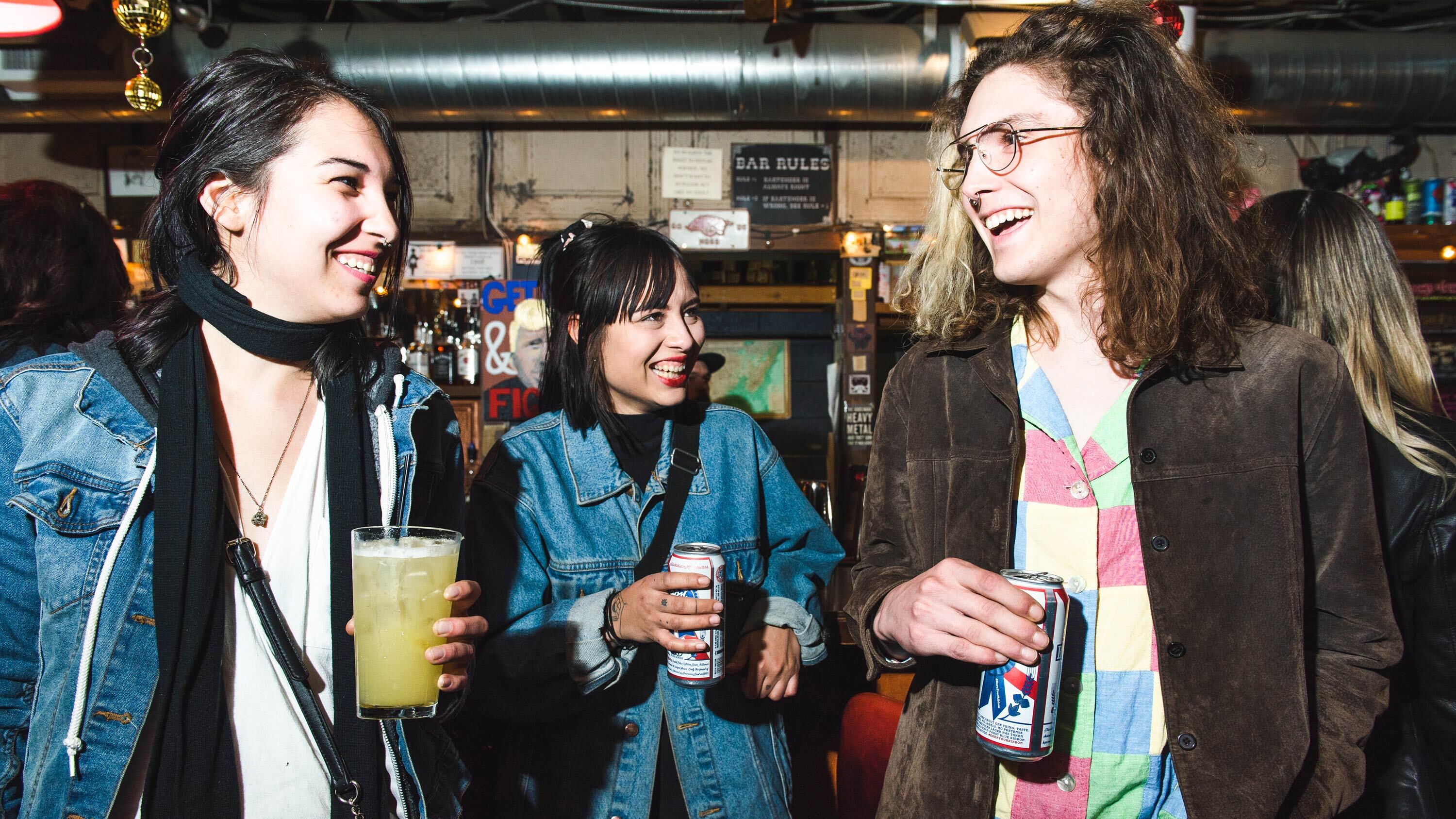 The couple loosely modeled the Fixin' To on the watering holes in Blasengame's native Arkansas. The kitchen serves Frito pie, and there are cocktails made with 7-Up and served in buckets. The wood-paneled walls are lined with string lights, and the fence around the massive patio is partially built with old doors and chicken wire. But for the most part, the Southernness comes from the bar's unassuming charm. For every rough edge, there's a warm touch—a flag from an Arkansas college inconspicuously hanging on a wall, a can of Rainier impaled on a plastic trophy, or a speech bubble that reads "Fuck Trump" drawn near George Washington's mouth on a $100 bill hanging behind the bar.