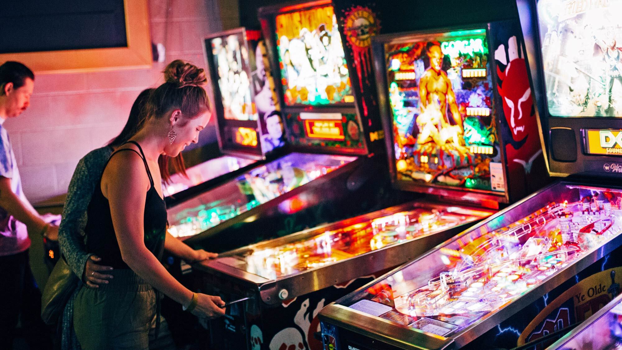 The former Alhambra Theatre is now home to Quarterworld, a massive retro-leaning arcade that boasts 34 pinball machines, 63 upright cabinets and a Nintendo-themed bao bun spot called Baoser next door.