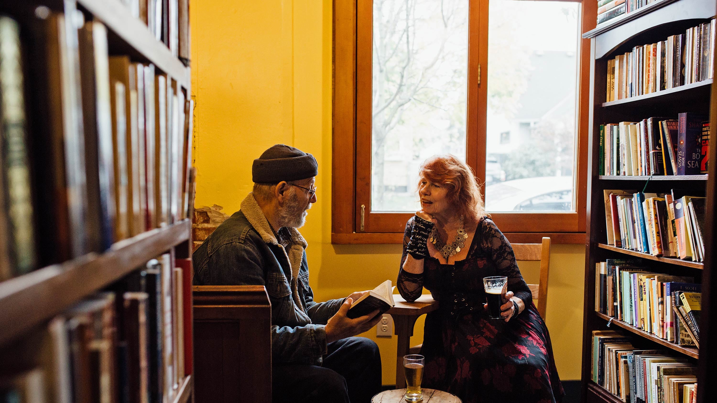 That's in part thanks to owner Elise Schumock's decision to keep the décor and layout nearly identical to the convivial and well-loved Irish pub that inhabited the space before Rose City Book Pub—County Cork. The public house's scuffed wooden booths, makeshift stage and Irish beer signs are still around. The few small aesthetic changes include repainted teal-and-yellow walls and, of course, added rows of bookshelves.