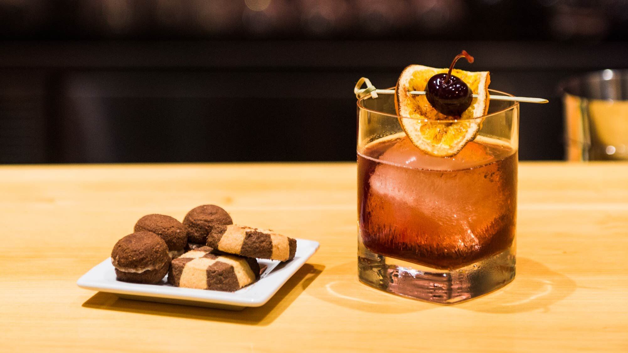 Bar Rione turned a concrete box once occupied by a convenience store into a sophisticated cocktail party. Operating as the waiting room for Pearl Italian spot Piazza Italia, its décor is comparatively subdued, but that just makes the more modern features—like a teal braided chandelier that spreads across the ceiling canopy style—pop.