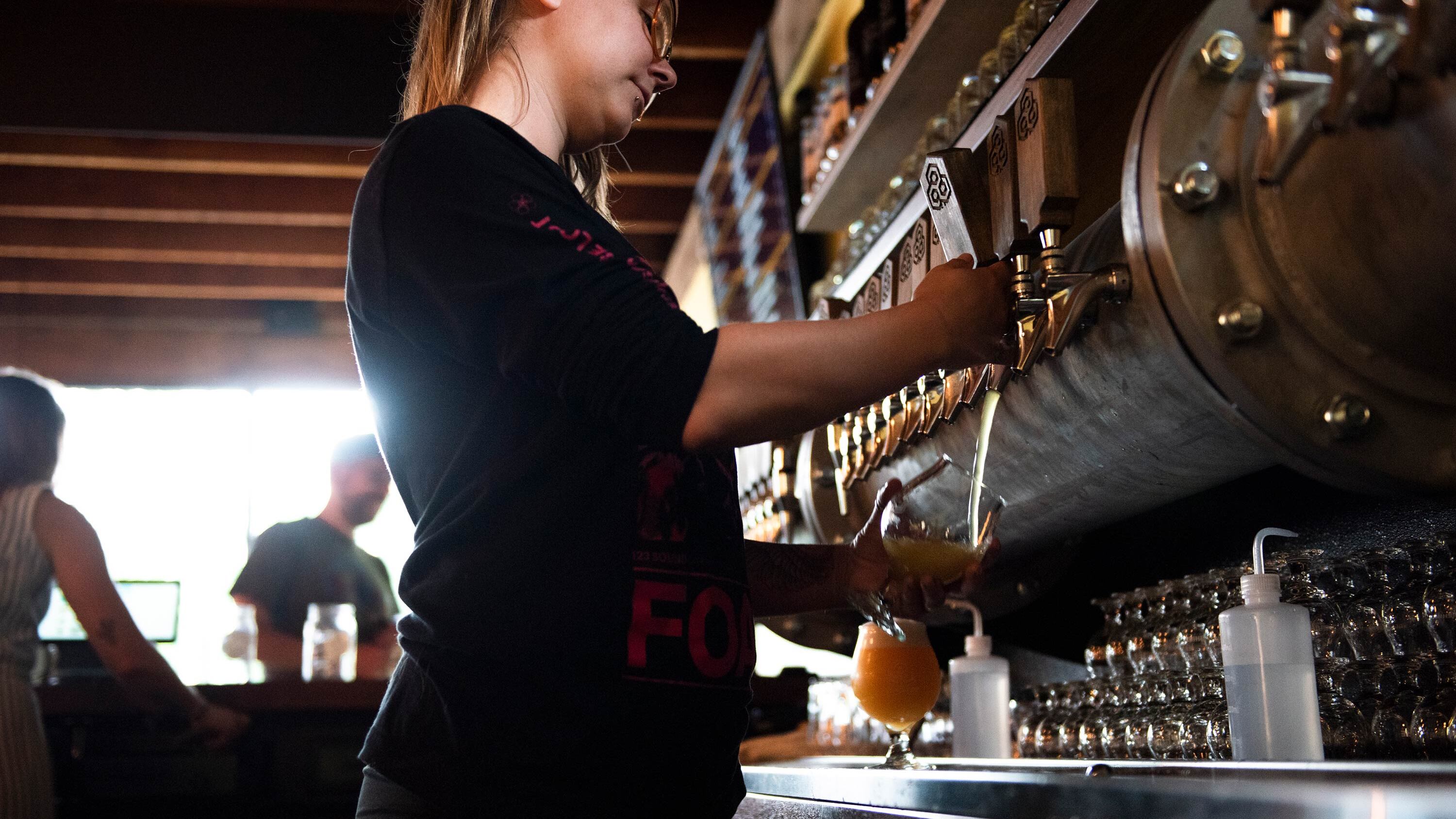 The brewery version of the variety pack is indeed the best approach. Not only will you find traditional styles, like the Kölsch made with all-German malt, but also eye-widening experiments that almost sound too fun to be beer. That includes a Mounds-inspired imperial stout that tastes every bit like a candy bar melting on the tongue. Steminist, a red rye saison featuring lemongrass, tea and honey, reads like an alcoholic cold remedy. The resinous Reclaim the Fame IPA is a seasonal brew on the Core roster that will flood your palate with deep pine flavors—try it next to an orange juice-heavy hazy like Dinosaurs Will Die to truly appreciate the evolution of this style.