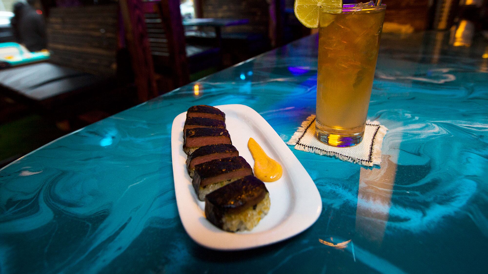 Overhauled from a Belgian bar into a faux-beachside resort, R&R borrows elements from your Hawaiian vacation Pinterest board—palm fronds, piña coladas, poke—and brings them to life. And if that's not enough to curb your seasonal affective disorder, an LED sunset repeats every few minutes. It's summer somewhere, right?