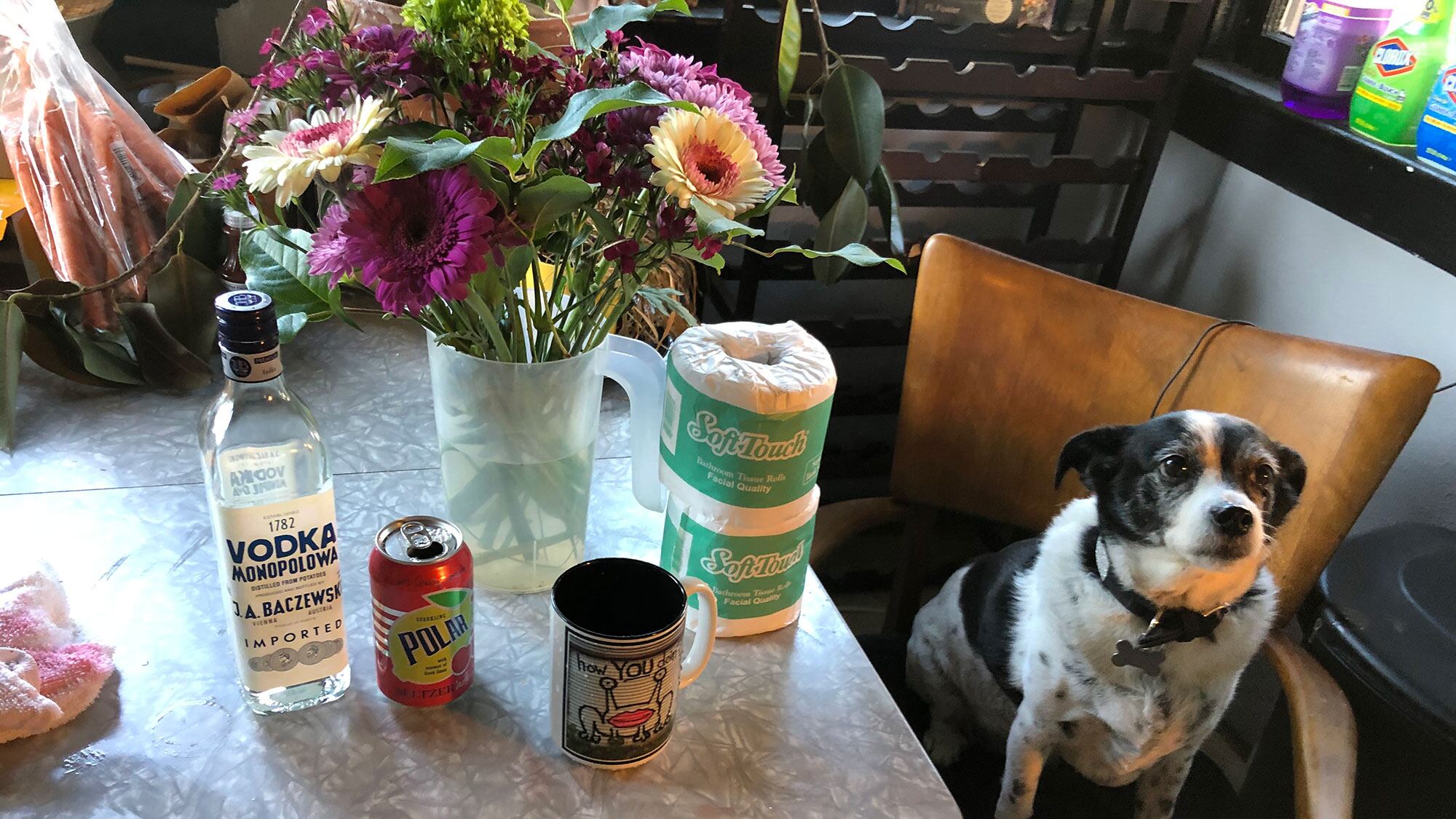 - 1 can of flavored seltzer schlepped home from the corner market that is still thankfully open