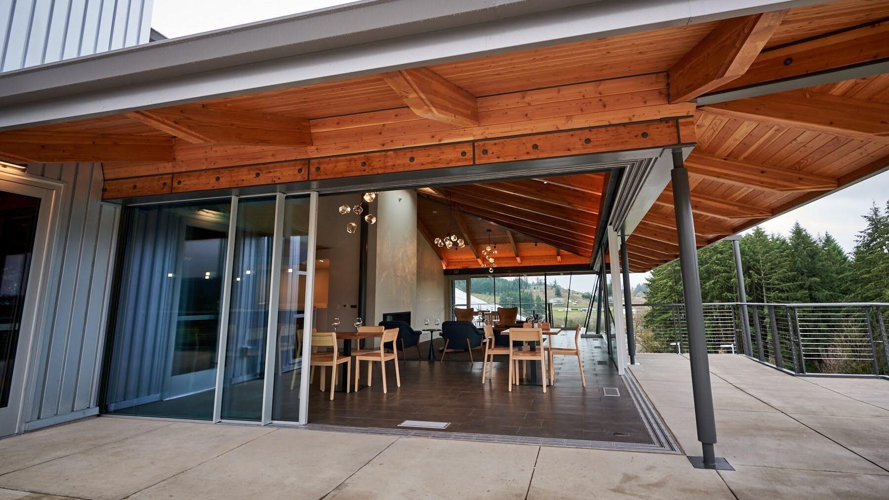 Since A to Z Wineworks purchased the winery in 2007, it has worked to build out a campus surrounding the old fruit- and nut-drying barn on the property. Rex Hill—which juts into view as you drive down Highway 99W into Newberg atop the slope it's named after—now has floor-to-ceiling moving windows, offering up impressive views of the surrounding estate vineyards and forestland.