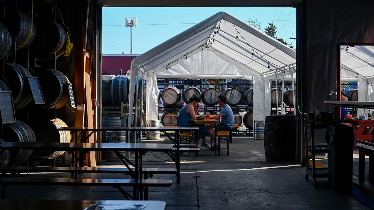 Even during the social distancing era, Gigantic Brewing’s taproom remains one of the friendliest places to drink in the neighborhood. Sure, for the time being, sinking into the taproom couches and watching Timbers games with the bartenders are off-limits. But you can still gulp full pints of the brewery’s tart, juicy beers, and sprawl out on one of two sunny patios. Hidden in the industrial area west of Reed College, the wide picnic tables make social distancing relatively easy, the garage-style doors allow for plenty of airflow while you’re waiting in line for a drink, and the lack of a food menu means the bartenders rarely have to come out from behind the cash register’s plexiglass barrier. (Sustenance is provided outside by the Hawaiian food cart 808 Grinds.) It’s no wonder the brewery’s zip-up hoodie- and baseball cap-wearing clientele seem as laid back as ever. SHANNON GORMLEY.