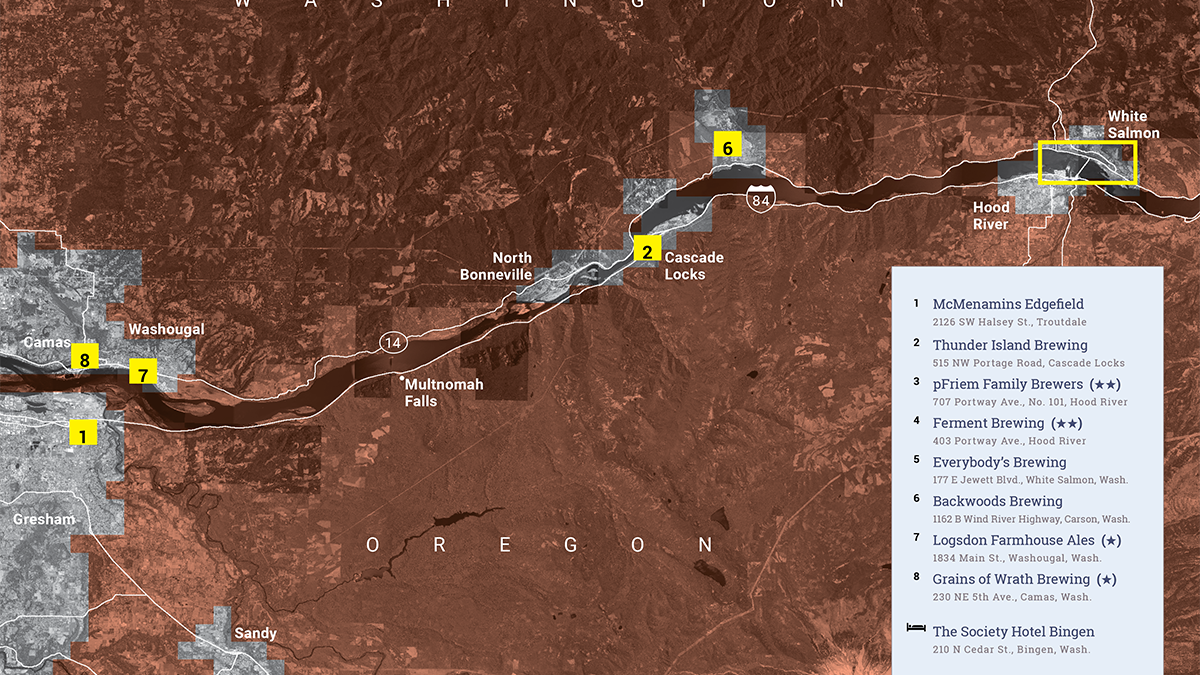 515 NW Portage Road, Cascade Locks, 971-231-4599, thunderislandbrewing.com. Noon-8 pm Monday-Thursday, 11 am-9 pm Friday-Saturday, 11 am-8 pm Sunday.