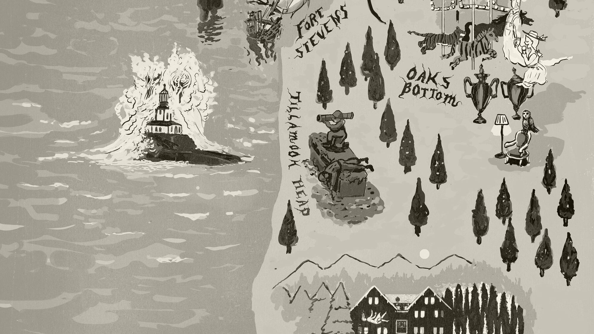 You'll wind around Wapato Marsh, passing by the wildlife mural on the Portland Memorial mausoleum, which became the first crematory west of the Mississippi when it opened in 1901. Eventually, you'll turn left onto the Springwater Corridor and head toward Oaks Amusement Park. The amusement park is allegedly haunted by a young man and a little girl who died there long ago, according to Ghosthunting Oregon by Donna Stewart, and visitors have reported seeing floating balls of light. According to Stewart, one park visitor said she felt a cold hand on her shoulder and then a whisper saying, "let's go."