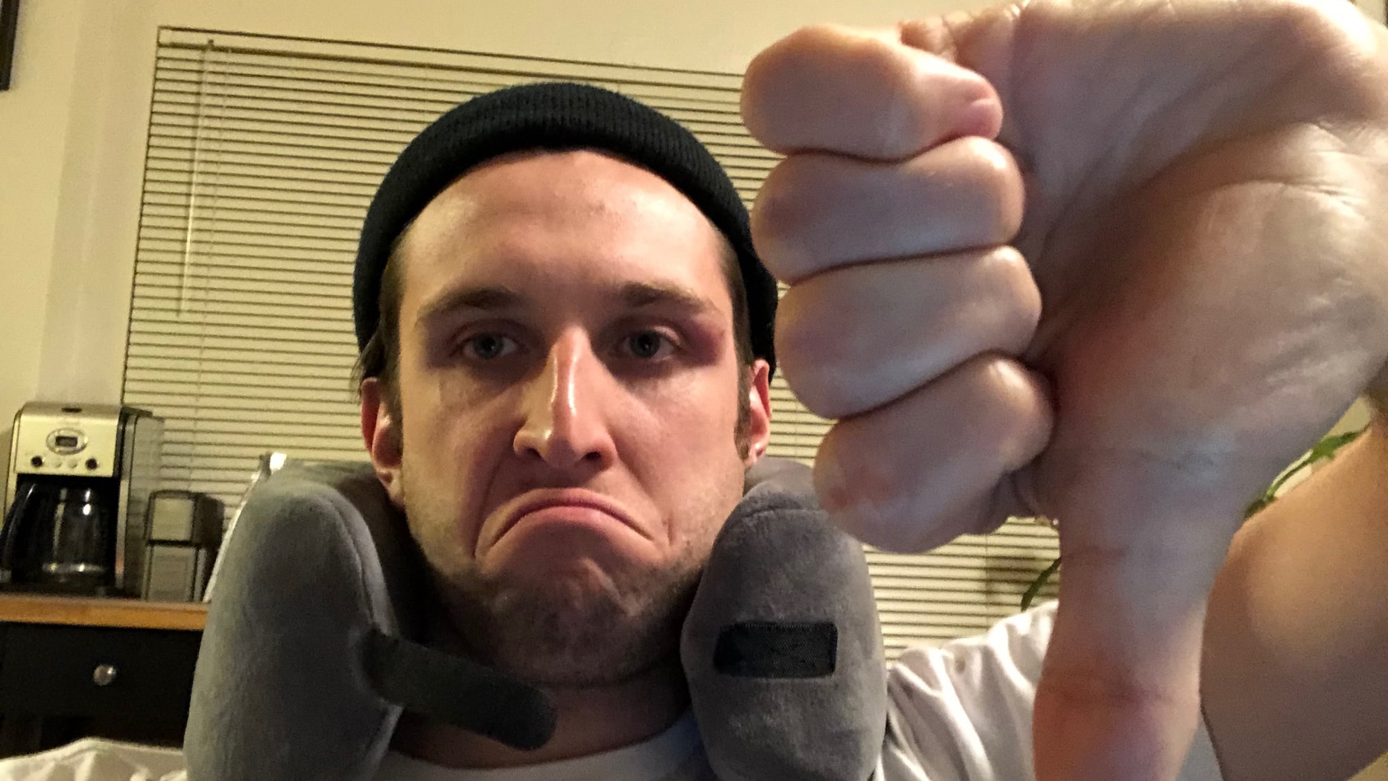 Yet, the problem is that it simply didn't help. I tested this pillow with about 30 hours of travel. On an early morning flight to New York (6 hrs) at the end of October, I wore it and tried to get some shut eye. Perhaps I just wasn't tired, but the pillow didn't help me nod off, and I quickly found it uncomfortable to have a pillow wrapped around my neck while just sitting in my seat. I intended to wear the pillow back to Portland, and after a week of terrible sleep I was beat, but I forgot that I had it with me and passed out on the flight.