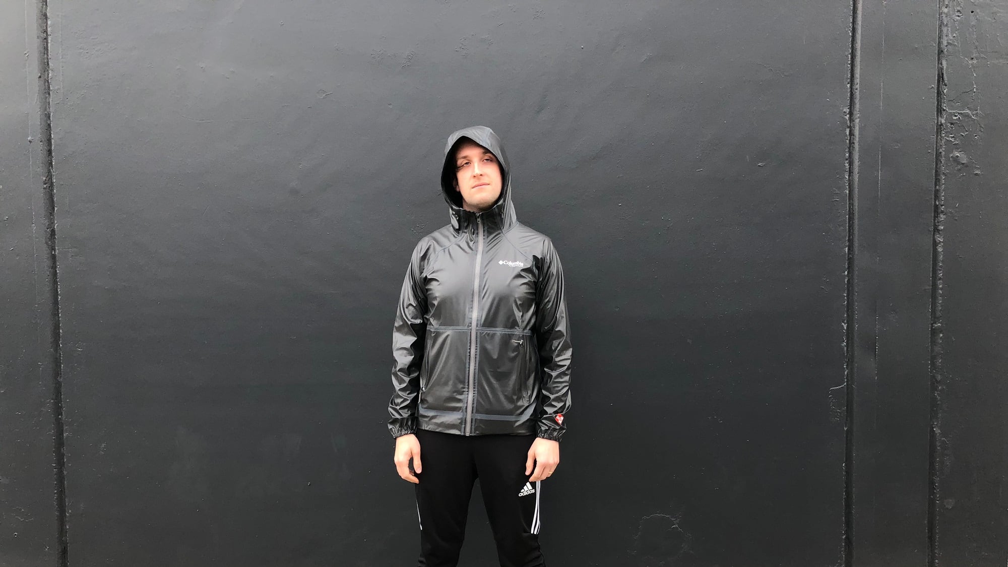 Columbia's properitary OutDry material is waterproof, but somehow made breathable by millions of tiny, almost-invisible perforations on its surface. The exterior of this hooded rain jacket is totally surfaced with OutDry, and it's two pocket and main zippers are all waterproof, insulated and slightly reflective. What's more, the coat is reversible—the "rain jacket" side being a kind of greyish black and the "jacket" side being normal black—which, though I can't imagine it affects functionality in dry conditions, is nonetheless pretty cool.