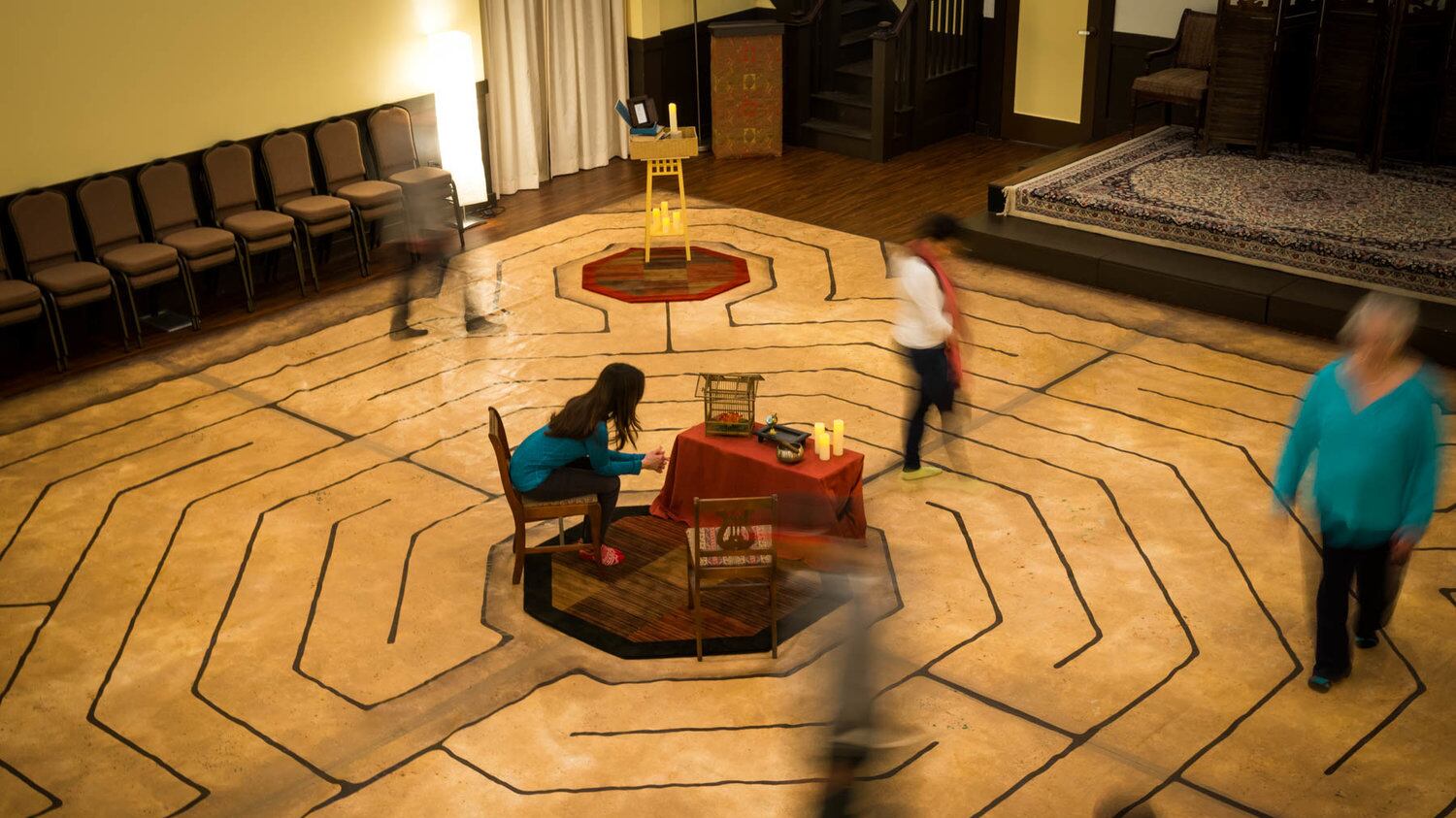 It hosts everything from weddings to textile Tuesdays, and received a dignified YouTube testimonial from Scottish actor Brian Cox. Yet the site's most intriguing event might be its monthly "labyrinth walk," which is open to the public on the third Saturday and Sunday of each month. Less a puzzle to be solved than an otherworldly experience to be slowly contemplated, the labyrinth is framed not by walls but by lines on a 33-square-foot floor—imagine the maze from a kids' menu blown up to a few hundred times the size—trusting that spoil-sport visitors won't violate the rules by simply walking straight to the center.