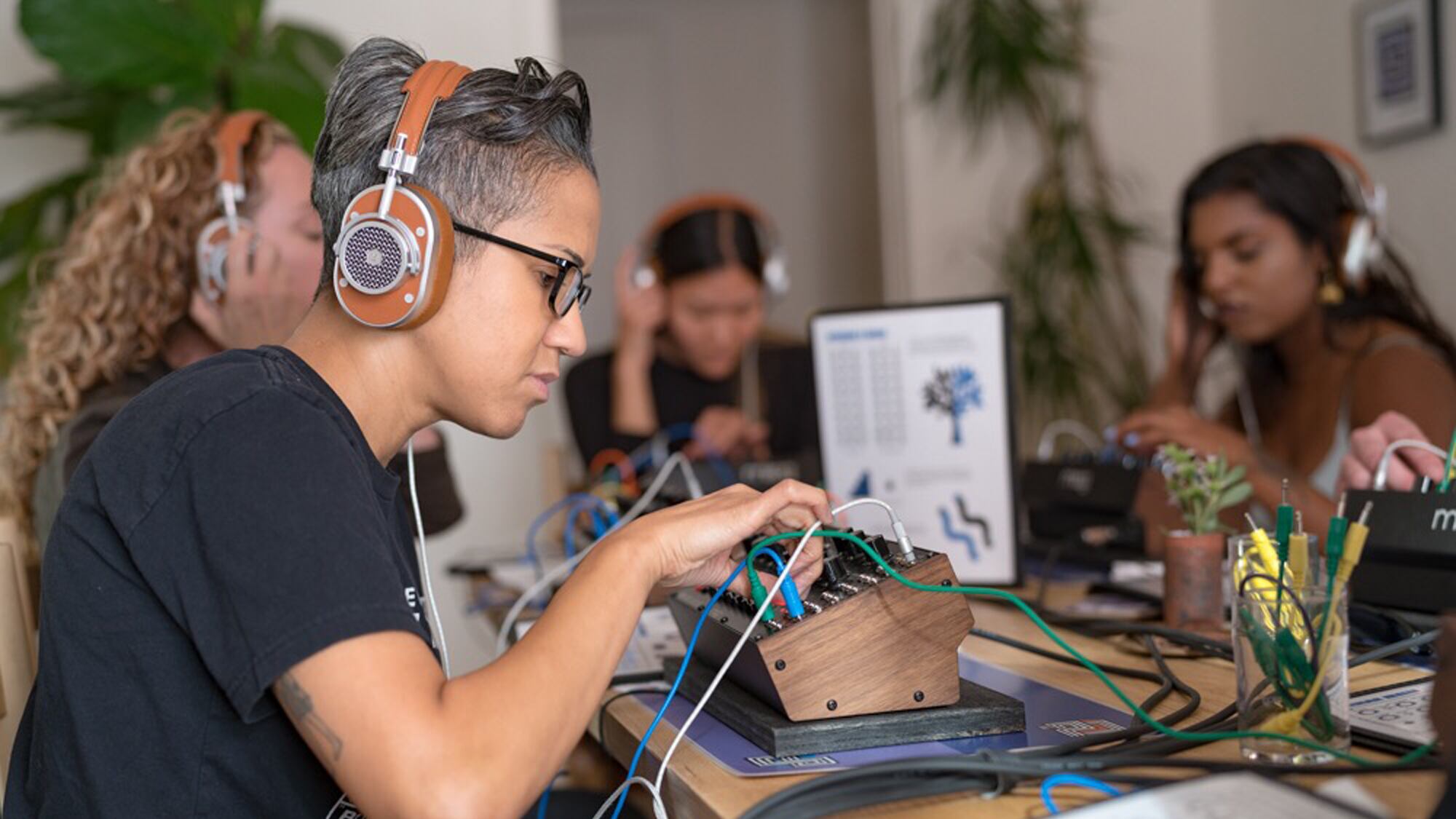 The esoteric culture around high-tech instruments can be almost as much of a barrier as their price. There's always a facilitator at Portland's Synth Library in case any of the users have questions about the equipment. S1 hosts workshops for new users, including workshops specifically for femme-identifying and gender-diverse people.