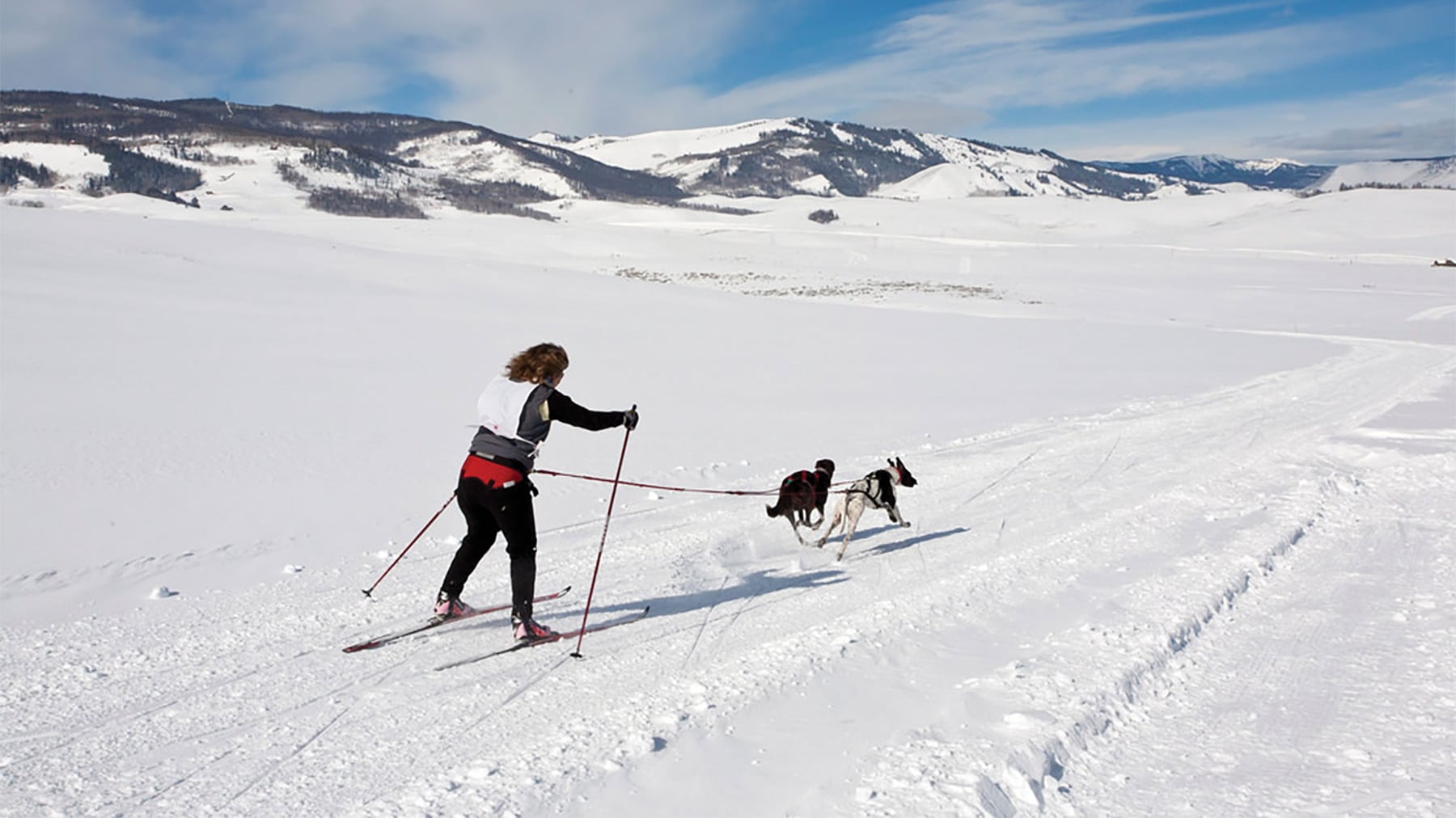 A clever way to keep your dog entertained in the winter. The sport, which was invented in Norway, involves being pulled on skis by a dog (or dogs), or sometimes a horse. Using a tether and a waist belt, skiers attach themselves to their dog's harness to be pulled through snowy mountain trails. Skijorusa.org recommends serious racers practice in the off-season by bikejoring and scootjoring.