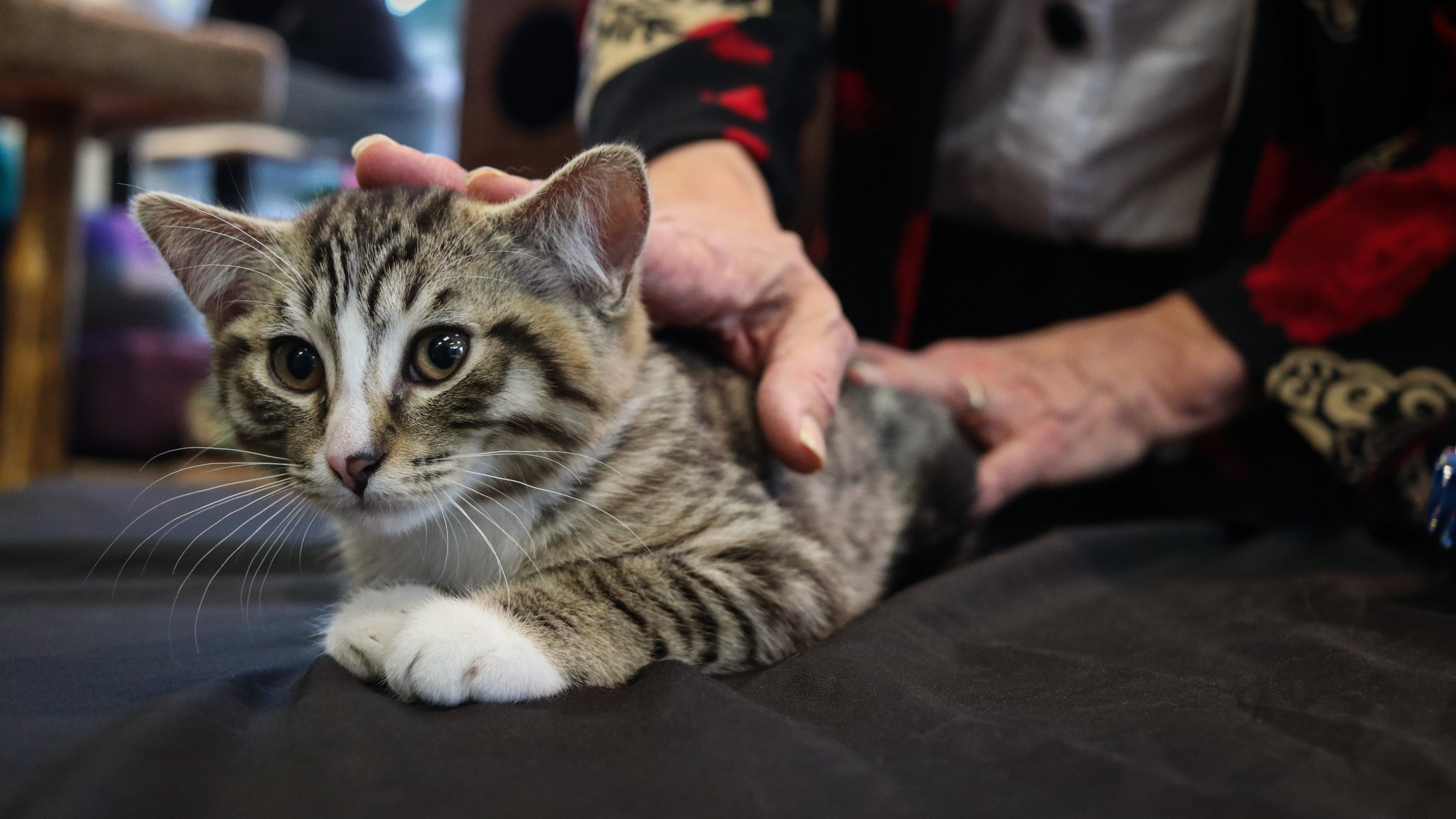 As she explained, show cats are judged against the written standard for their breed, with four main criteria: health, condition, balance and presentation. In the middle of the store, Barrett pulled Greg from his crate, gently stretching him out like hand-pulled ramen noodles, and went into a spiel for the few customers milling about on Saturday morning.