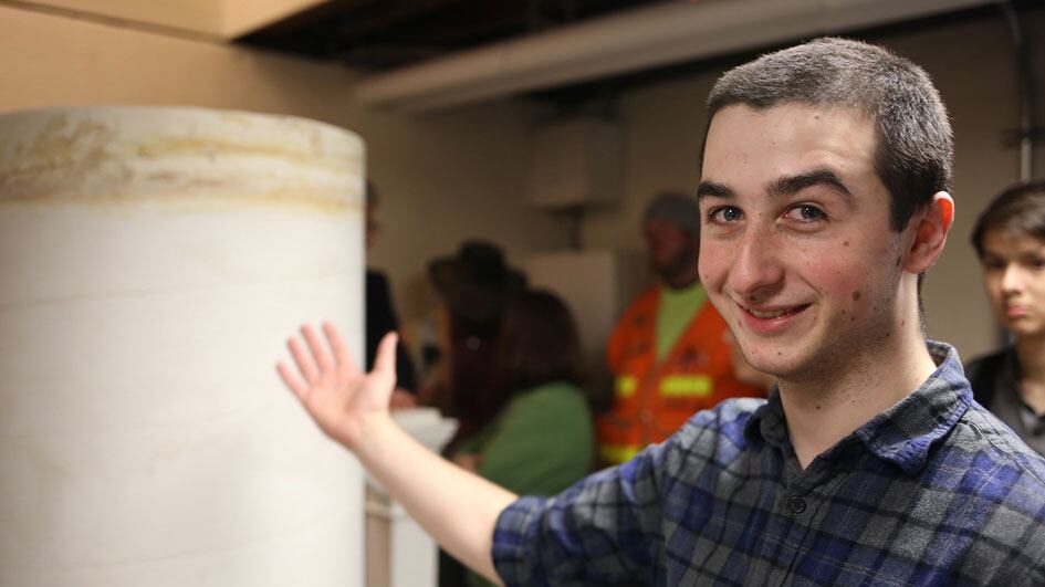 Lorenzo Barrar, a physics major and one of the students who helped make the big chalk, says he's not sure how the stick will be moved out of the Reed basement it was made in, as it likely weighs over 1,000 pounds.