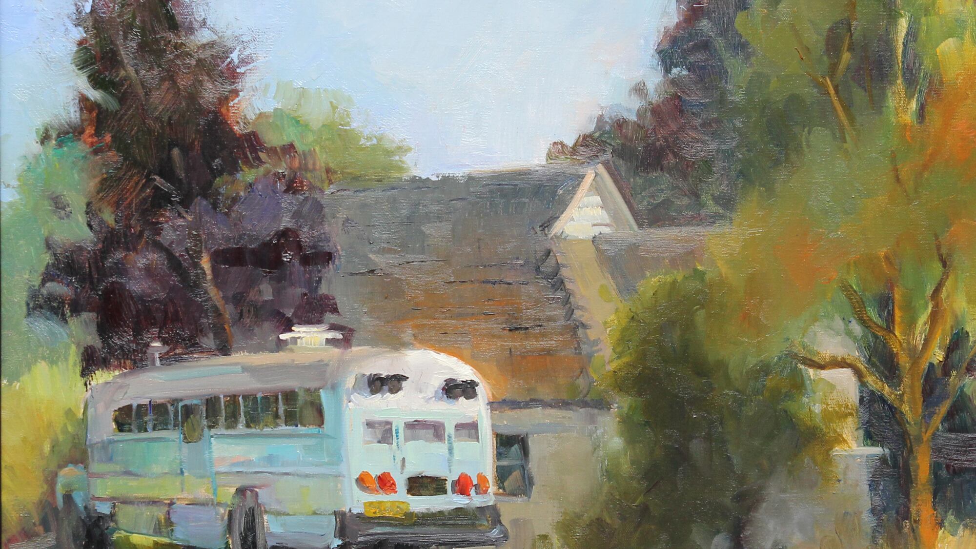 Some of the subjects so far include a group of Douglas firs on a residential property in Canby and a maple on the corner of a Flanders Street parking lot that’s about to be become a hotel. Last fall, artist Loretta Sampson painted a cluster of maples that surround four pioneer gravestones in Scappoose, in an area Portland Community College has long eyed for development. The painting is a cinematic, almost eerie scene, placing the mossy, gangly trees underneath a veil of fog.