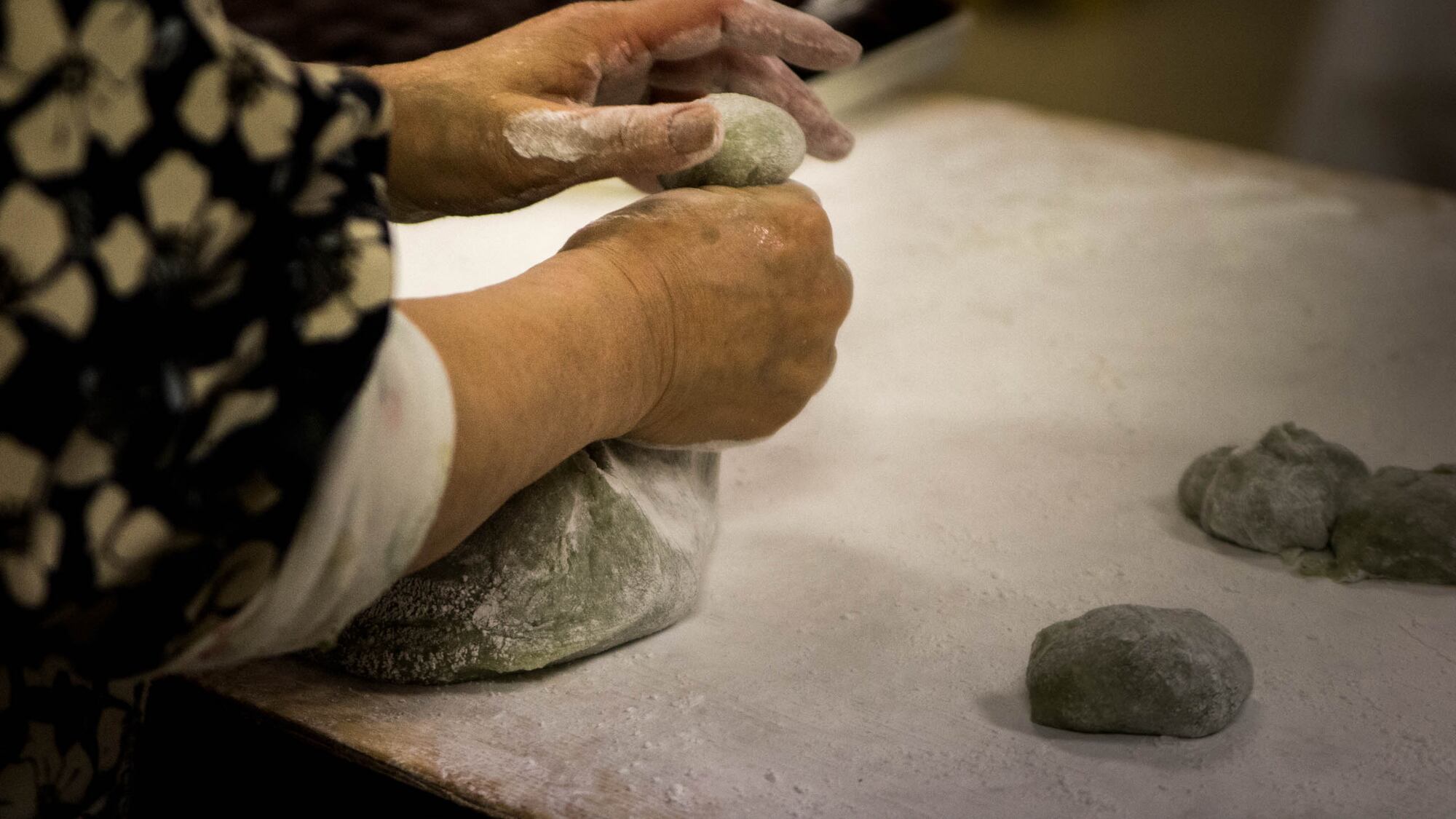 Now, in the final days of the year, the Uzunoe family and a handful of church volunteers and their kids head to the church’s kitchen around 4 am and produce more than 2,000 pounds of the gummy treats, which they make available for preorder through the church. The freshly cooled packs of mochi sell out so fast that deliveries to Uwajimaya have to be staggered throughout the day.
