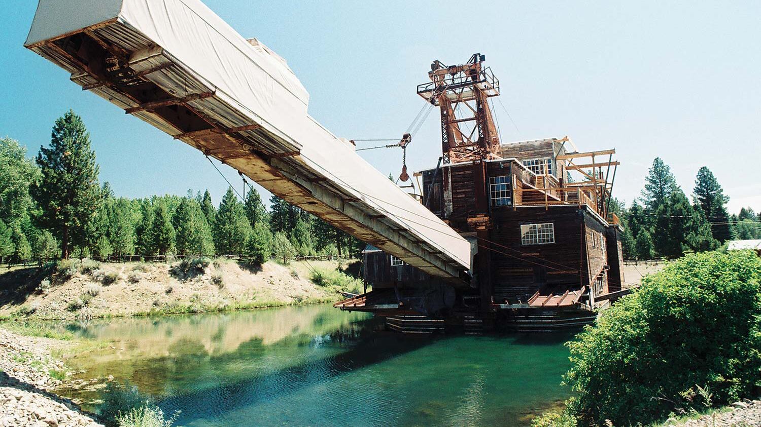A pick and a pan are the iconic tools associated with gold digging. But those aren’t necessarily the most efficient instruments to extract anything of value from the ground. For a faster way to unearth large quantities of gold, prospectors turned to dredges, and you can tour one that remains at the base of the Elkhorn Mountain Range. Sitting in a pond of its own making is a five-story machine known as the Sumpter Valley Dredge (211 Austin St., Sumpter, oregonstateparks.org) that kind of looks like an oversized houseboat crossed with a sternwheeler, only instead of a paddle you’ll find a massive system of pulleys and cables along with a chain saw-shaped arm bearing 72 1-ton buckets. Those containers chewed through the land, scooping rock into the dredge’s belly, where steel cylinders would separate the material by size. Leftover gravel was shot out the back end. It could process 9 cubic feet per minute and operated 24 hours a day, every day, except for Christmas and the Fourth of July, from 1935 to 1954. In its time, the dredge dug up more than $4 million worth of gold and scarred untold acres of Eastern Oregon.