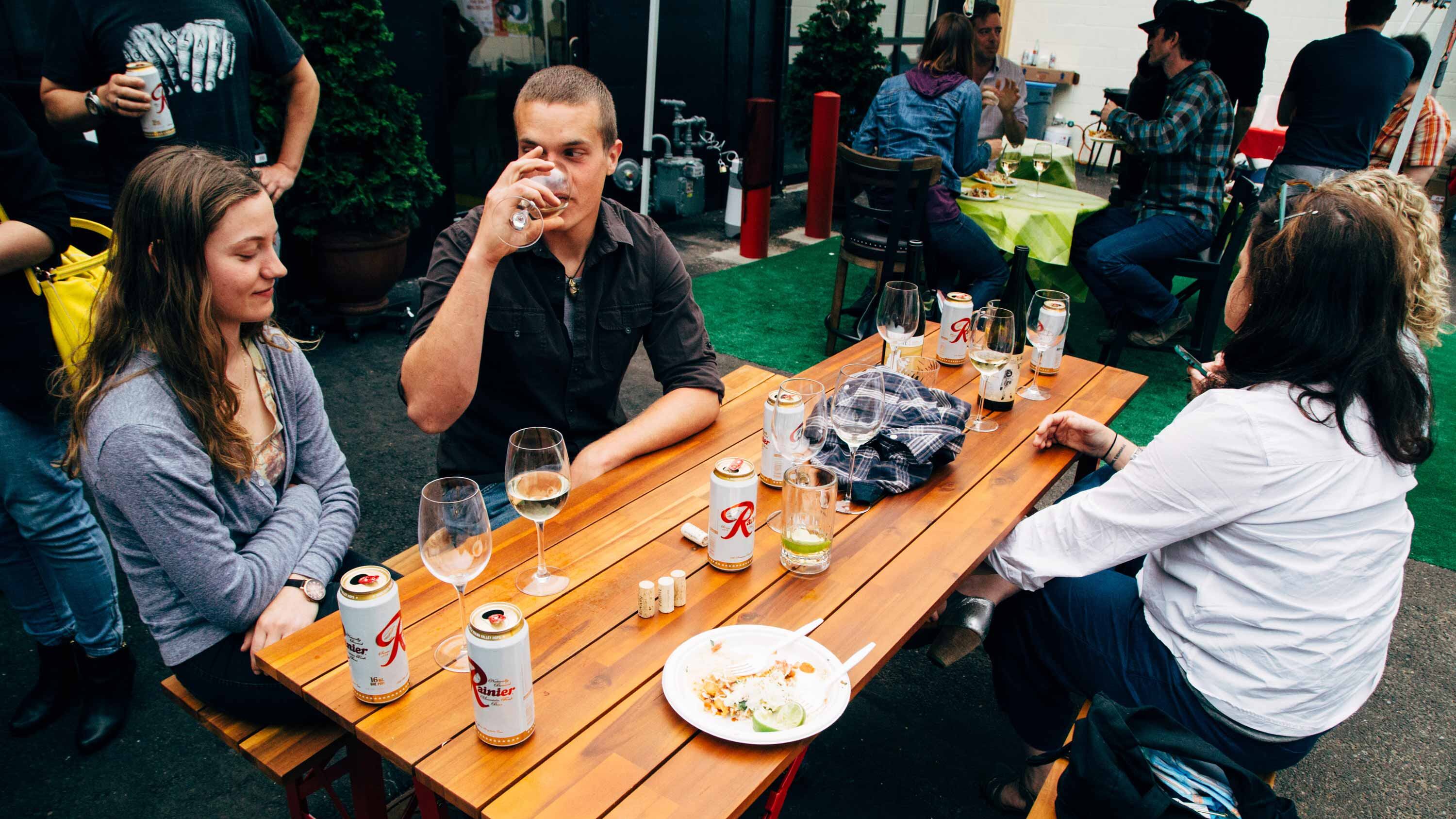 Teutonic (3303 SE 20th Ave., 503-235-5053, teutonicwines.com, 12pm-9pm Mon.-Sat., 1-7pm Sun.) may be the raddest wine bar in Portland. The urban winery is the home of local metal band Red Fang’s wine, and co-owner Barnaby Tuttle himself is a metal head reluctantly turned winemaker. The bar serves offbeat creations, like a savory, yeasty riesling called Candied Mushroom, and if wine isn’t your thing, the bar also serves Rainier tallboys. The patio is small—just a handful of round tables underneath a canopy out front—but it’s still a lovely spot to sip one of Teutonic’s minerally wines. Plus, it’s usually empty during the bar’s frequent shows, and while the venue books stellar up-and-coming local jazz bands, the open-air space is ideal if you’re looking for a more intimate setting that doesn’t require talking over the sound of a blaring trumpet.